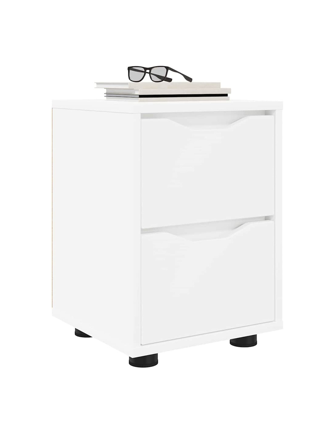 - Materiali: Fatto in legno ingegnerizzato, questo comodino è progettato per durare. È scelto per la sua solidità, rendendolo tanto stabile quanto resistente all'umidità. Questo garantisce che il mobilio mantenga il suo aspetto anche con umidità variabile tipica delle camere da letto.