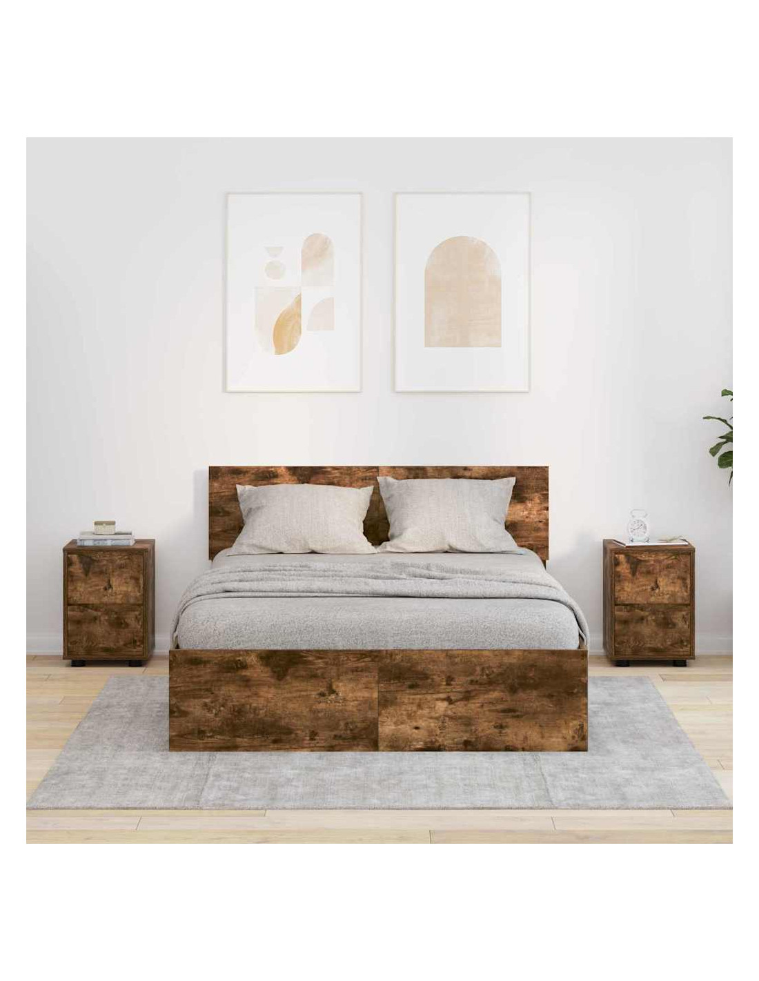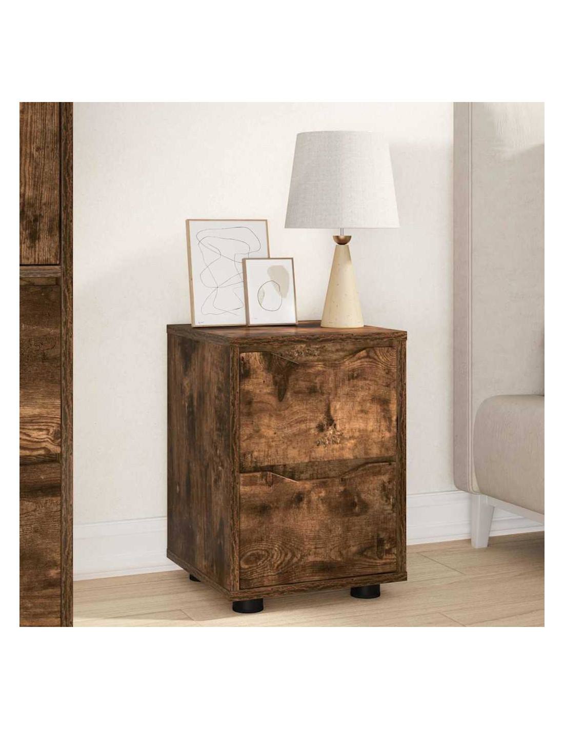- Materiali: Fatto in legno ingegnerizzato, questo comodino è progettato per durare. È scelto per la sua solidità, rendendolo tanto stabile quanto resistente all'umidità. Questo garantisce che il mobilio mantenga il suo aspetto anche con umidità variabile tipica delle camere da letto.