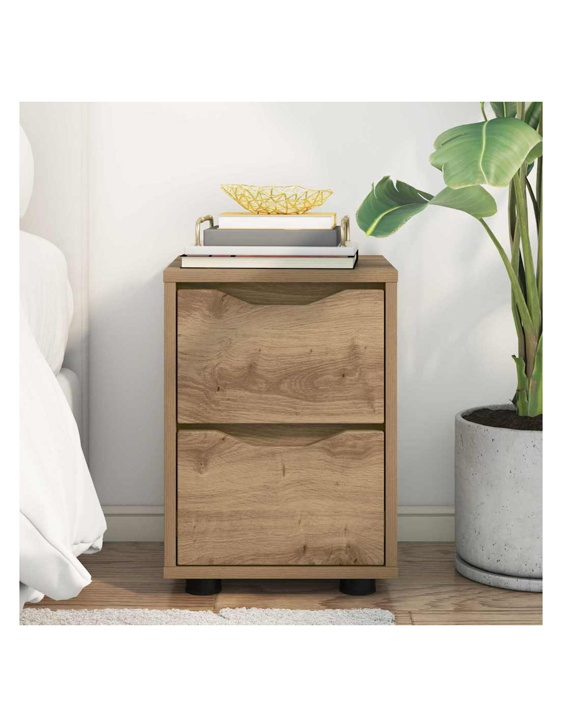- Materiali: Fatto in legno ingegnerizzato, questo comodino è progettato per durare. È scelto per la sua solidità, rendendolo tanto stabile quanto resistente all'umidità. Questo garantisce che il mobilio mantenga il suo aspetto anche con umidità variabile tipica delle camere da letto.