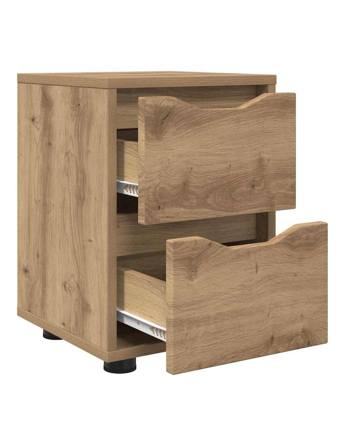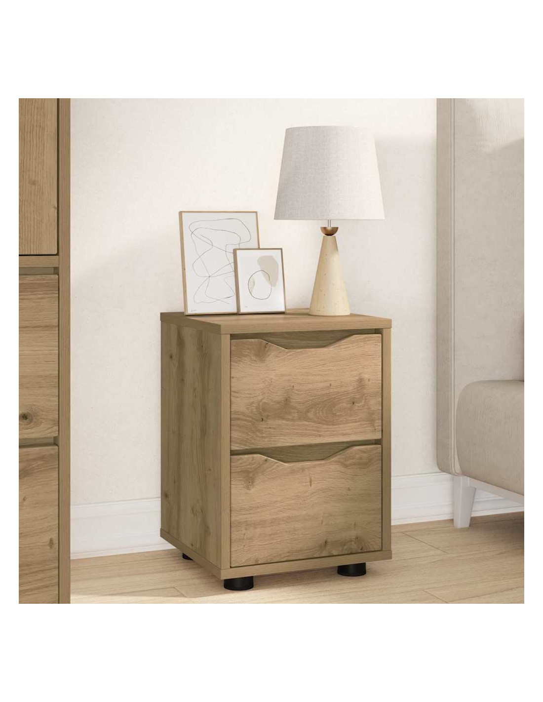 - Materiali: Fatto in legno ingegnerizzato, questo comodino è progettato per durare. È scelto per la sua solidità, rendendolo tanto stabile quanto resistente all'umidità. Questo garantisce che il mobilio mantenga il suo aspetto anche con umidità variabile tipica delle camere da letto.