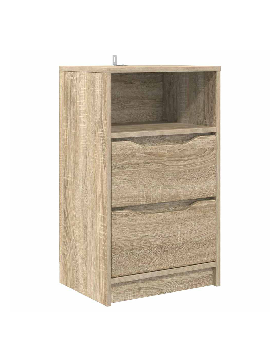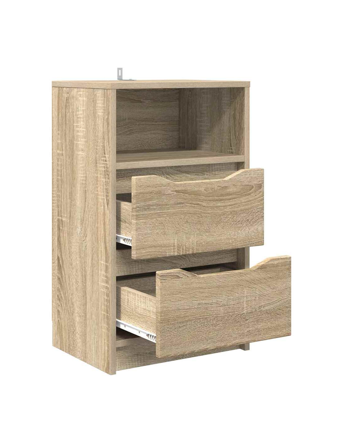 - Legno ingegnerizzato: Il comodino è fatto interamente in legno ingegnerizzato, compresi i cassetti, il retro e la struttura. Questo materiale è robusto e stabile, garantisce che il tavolo regga nel tempo senza deformarsi o rompersi.