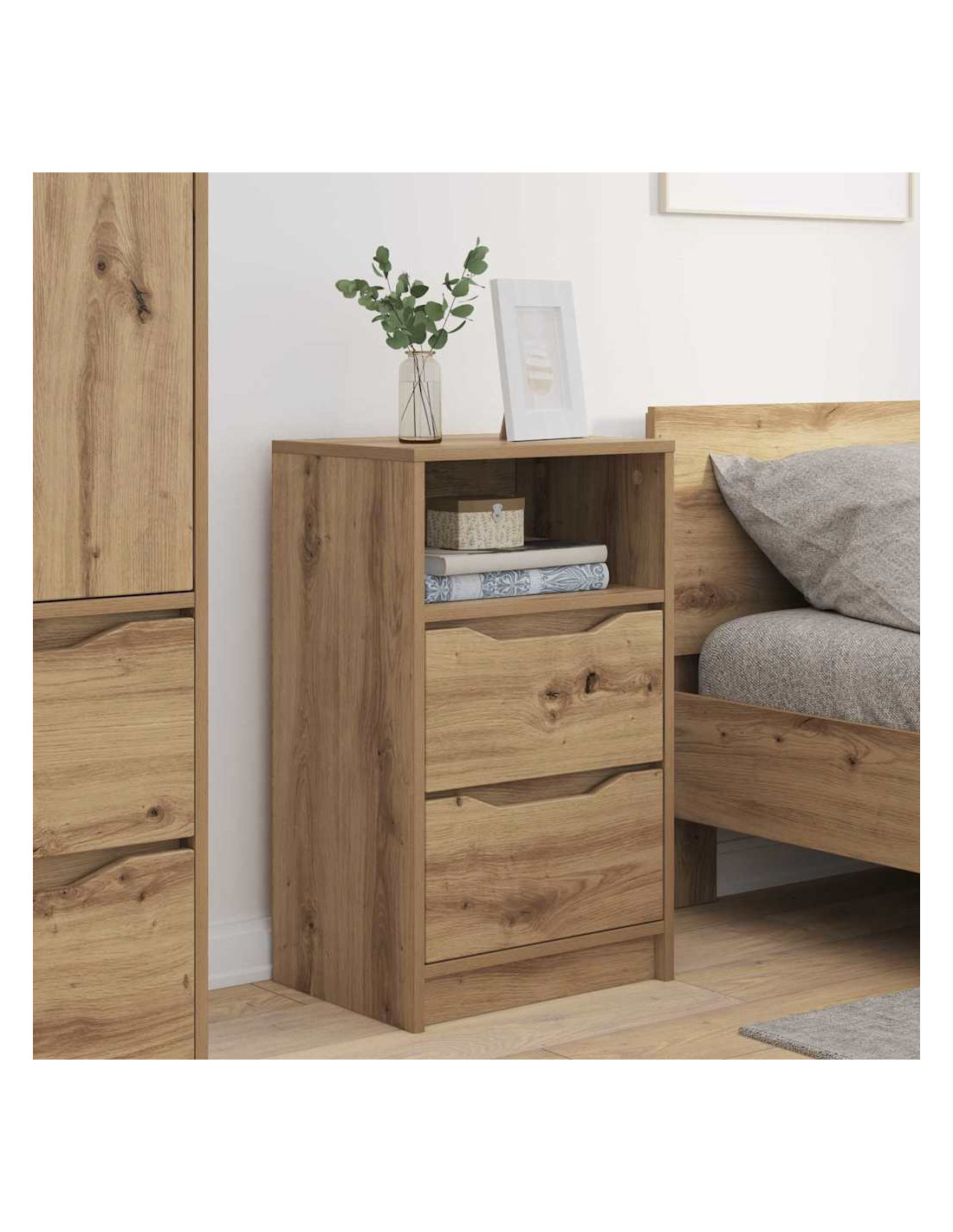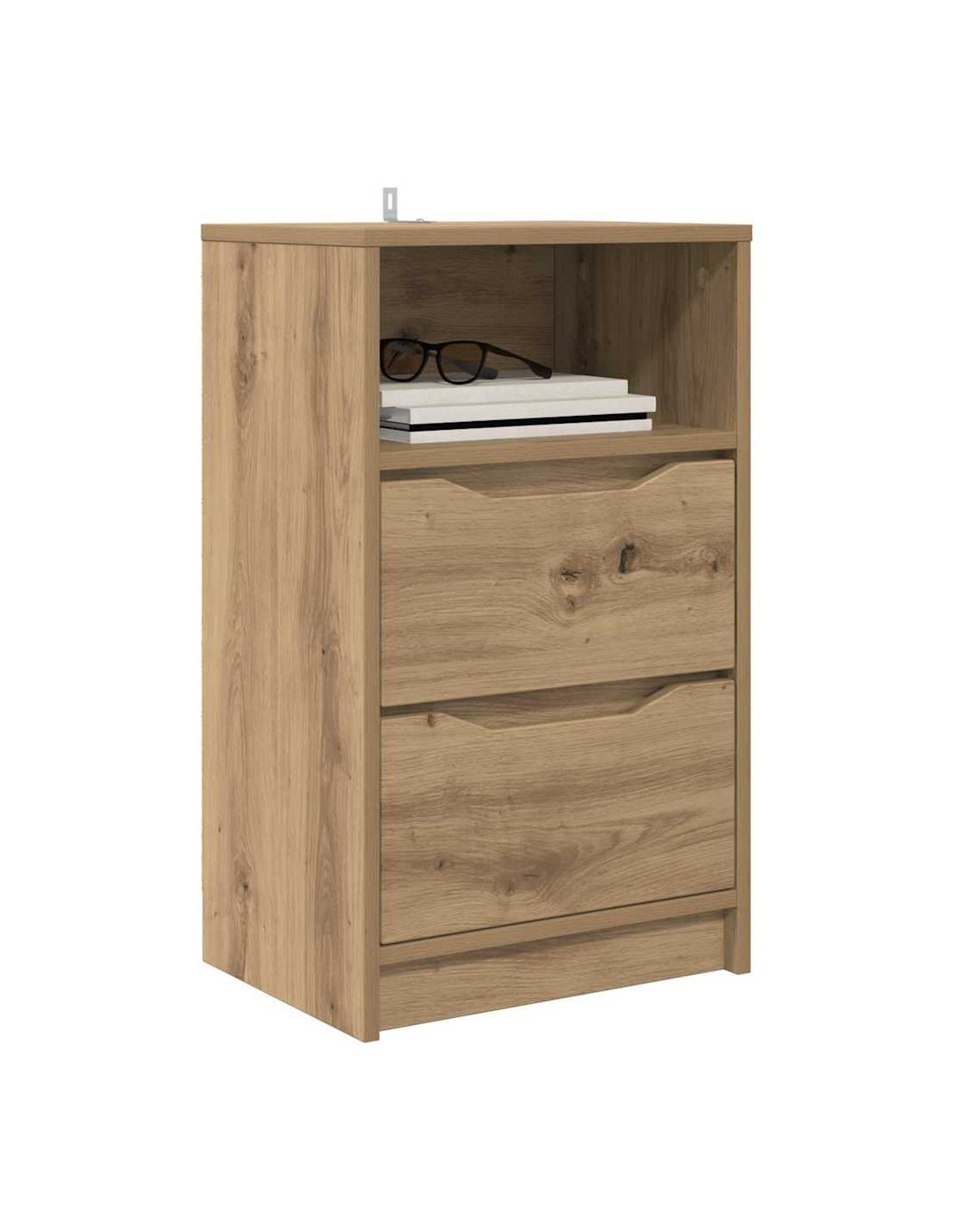 - Legno ingegnerizzato: Il comodino è fatto interamente in legno ingegnerizzato, compresi i cassetti, il retro e la struttura. Questo materiale è robusto e stabile, garantisce che il tavolo regga nel tempo senza deformarsi o rompersi.