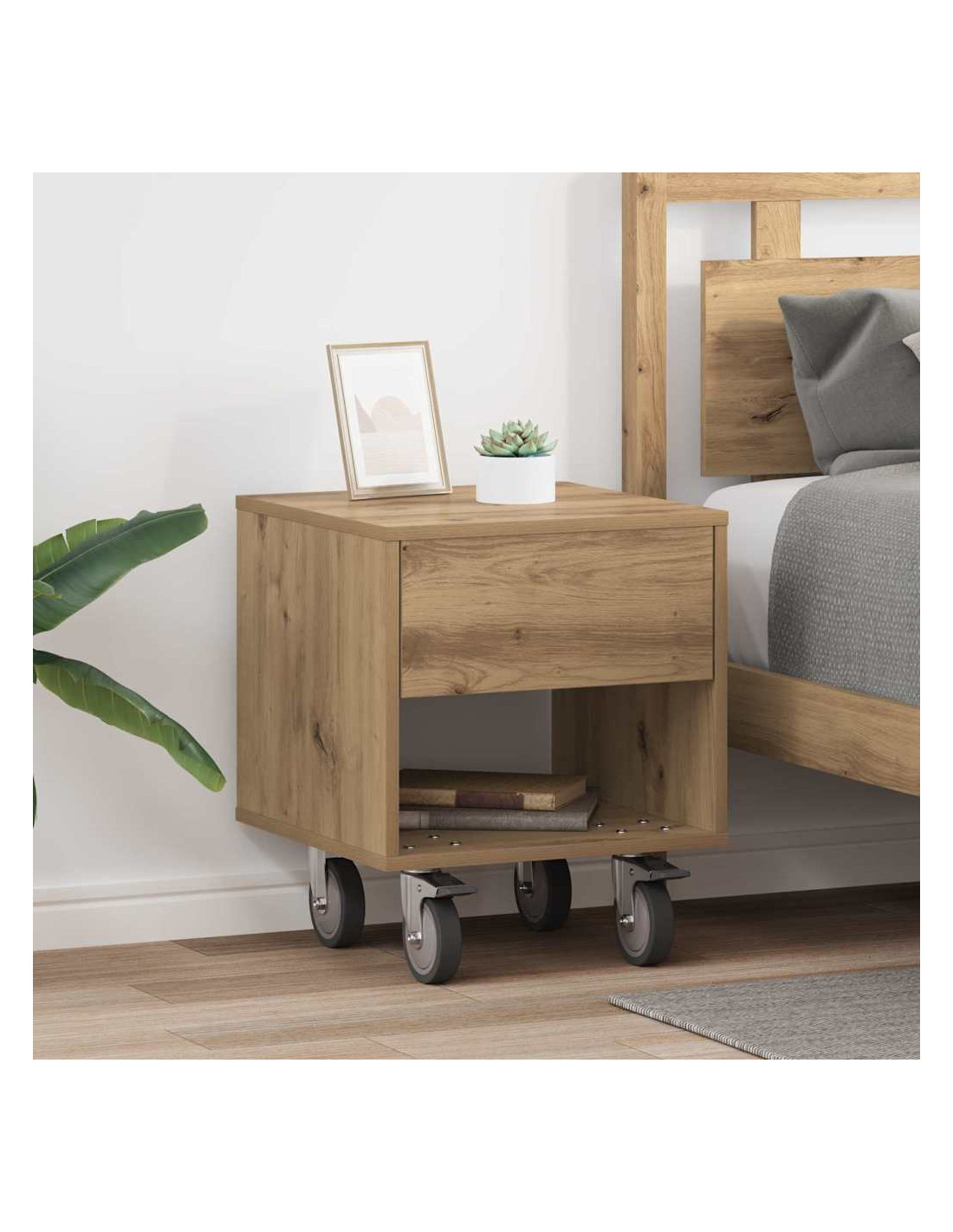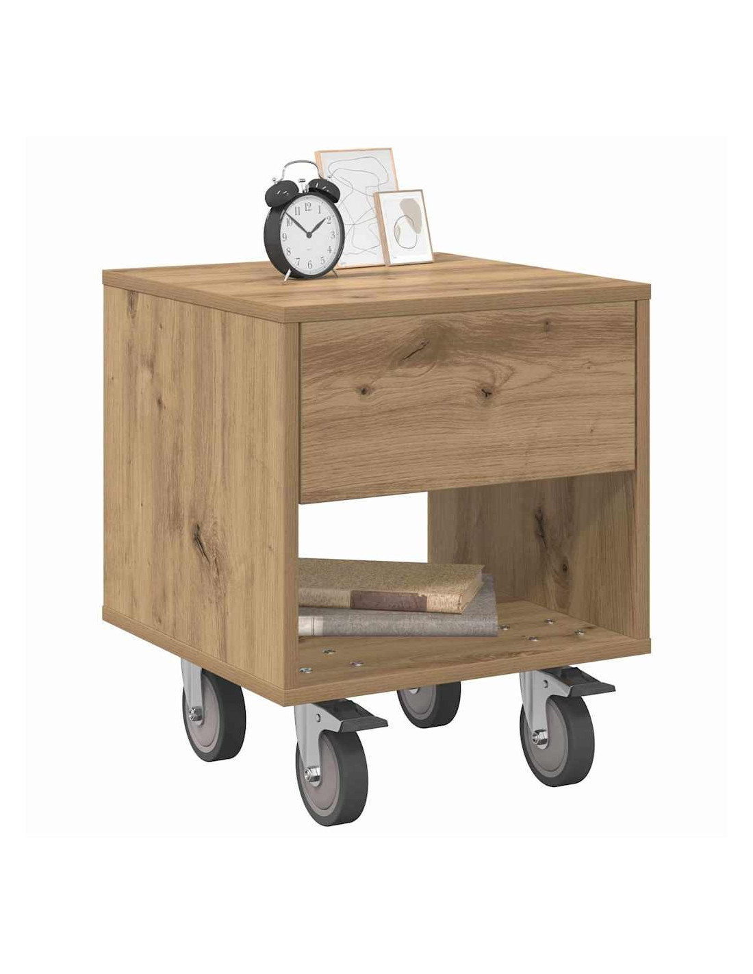 Il Comodino Moderno è una scelta cool e pratica per il tuo soggiorno o camera da letto. Con la sua forma rettangolare e il legno ingegnerizzato, si abbina perfettamente a stili decorativi moderni e minimalisti, ideale per chi ama linee pulite e un look ordinato. È progettato per l'uso quotidiano, soddisfacendo le varie esigenze, dal contenere gli oggetti essenziali la notte a servire come supporto per decorazioni o lampade.