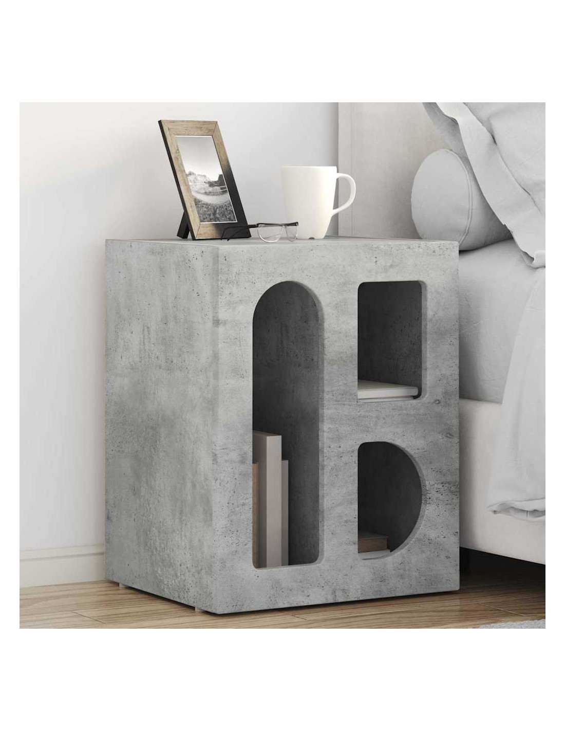 - Legno ingegnerizzato: Questo comodino è fatto di legno ingegnerizzato, il che significa che unisce bellezza e resistenza. Si distingue per la sua consistenza uniforme e la capacità di non deformarsi, assicurando una superficie durevole per l'uso quotidiano. Il suo design moderno rende questo pezzo un'ottima scelta per qualsiasi camera da letto.
