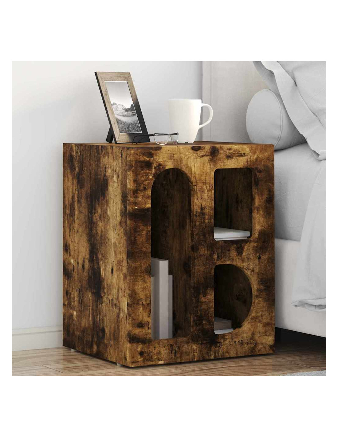 - Legno ingegnerizzato: Questo comodino è fatto di legno ingegnerizzato, il che significa che unisce bellezza e resistenza. Si distingue per la sua consistenza uniforme e la capacità di non deformarsi, assicurando una superficie durevole per l'uso quotidiano. Il suo design moderno rende questo pezzo un'ottima scelta per qualsiasi camera da letto.