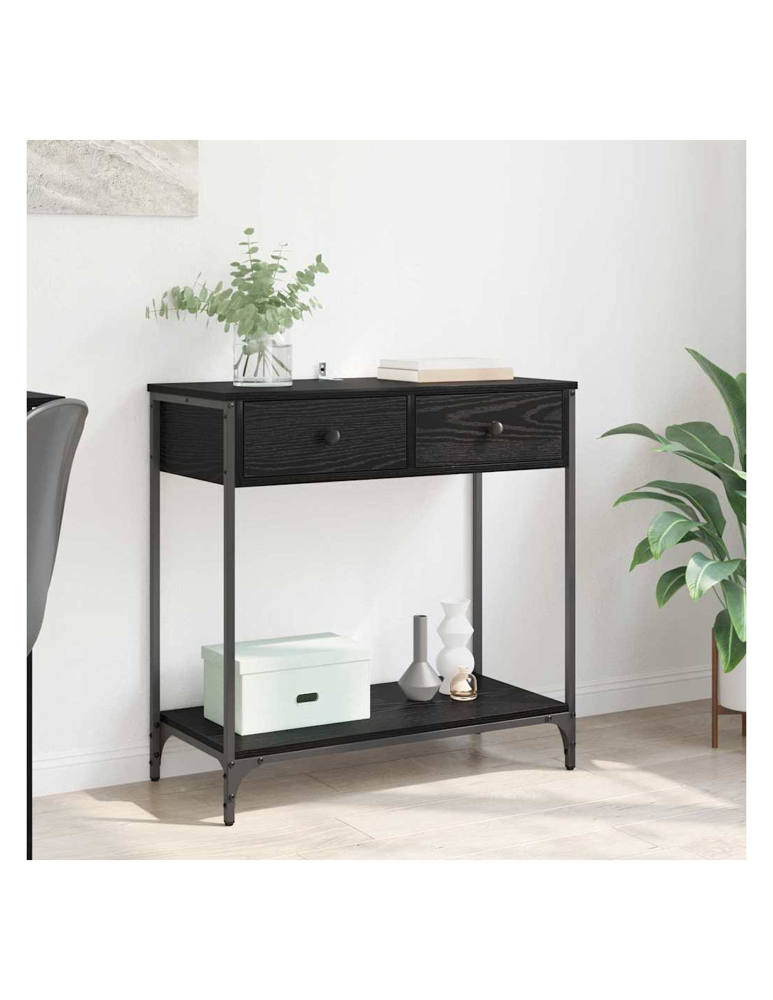 - Aestetica industriale: Questo tavolo consolle cattura lo stile industriale con la sua superficie in legno ingegnerizzato testurizzato, che richiama il fascino urbano grezzo. Con un telaio metallico e robuste gambe in acciaio, aggiunge un tocco chic da magazzino a qualsiasi stanza, diventando un punto di riferimento nel soggiorno moderno. La combinazione di metallo e legno ingegnerizzato trova un equilibrio tra robustezza ed eleganza moderna.