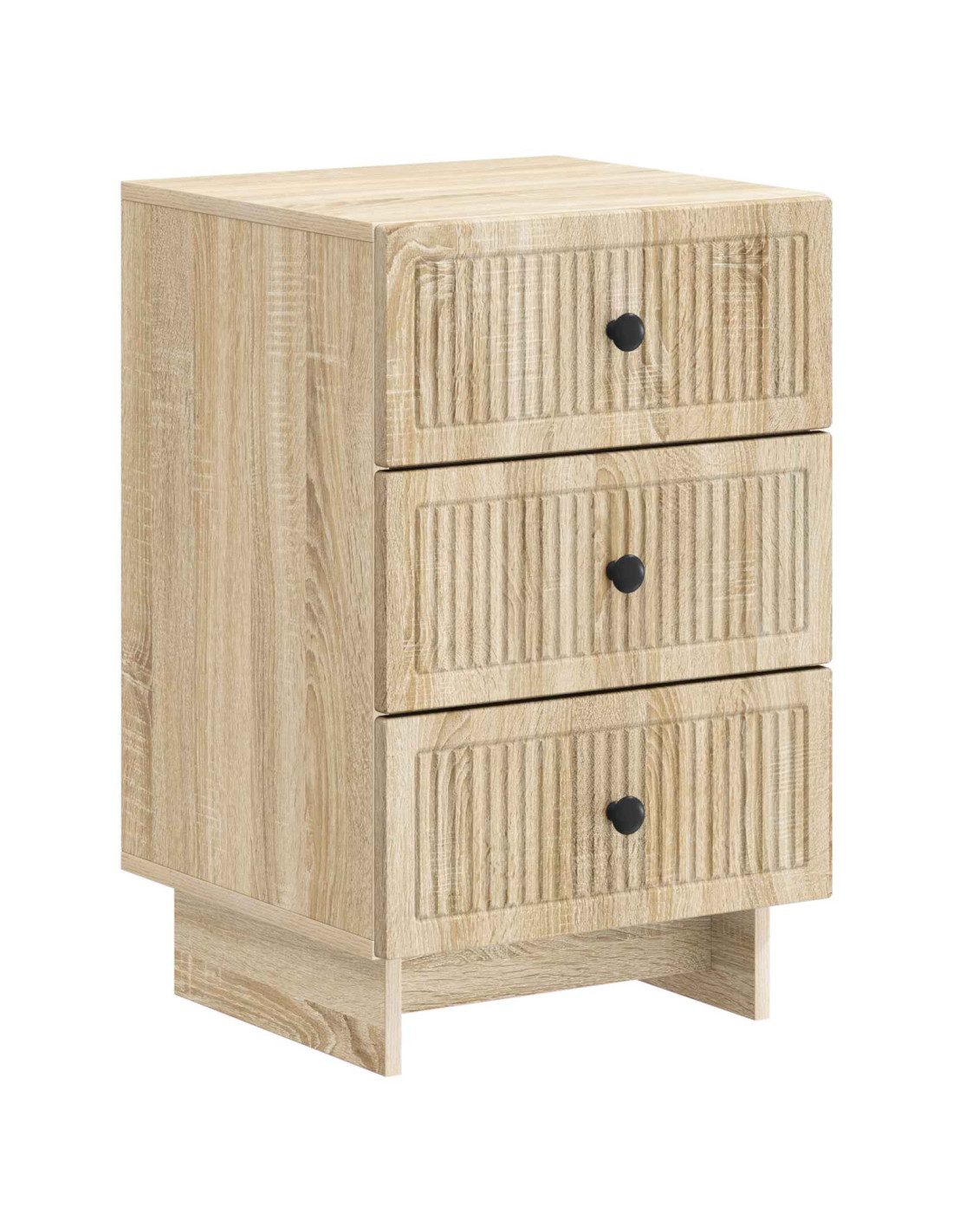 Questo comodino moderno unisce estetica vintage e design contemporaneo, risultando perfetto per qualsiasi tipo di decorazione della camera da letto. Ha un look retro che offre tanto spazio per riporre le cose e un'eleganza utile per tenere tutto in ordine. La sua forma si adatta bene accanto a tutti i letti, rendendo la stanza più accogliente. Struttura in legno ingegnerizzato: Fatto con legno ingegnerizzato di alta qualità, è super resistente e mantiene il suo look per anni. Resistente a graffi e umidità, perfetto per l'uso di tutti i giorni senza sforzo. Amplo spazio di archiviazione: Con cassetti ampi, questo comodino tiene tutto in ordine e a portata di mano. I cassetti scorrono facilmente su guide e possono contenere libri, elettronica o cose personali, rendendolo pratico accanto al letto. Eleganti manopole in metallo: Ha manopole nere in metallo, un dettaglio che aggiunge eleganza e un tocco vintage al design. Questi manici non solo rendono il mobile più bello, ma permettono anche un facile accesso a tutto ciò che hai riposto. Aggiunta versatile per la camera da letto: Si adatta a diversi stili, questo comodino è un pezzo versatile che si fonde sia in ambienti moderni che vintage. Il suo design senza tempo e le funzionalità pratiche lo rendono un complemento bello e utile in ogni camera. Istruzioni per la cura facile: Richiede poca manutenzione per durare a lungo. Basta pulirlo con un panno umido per tenerlo in ottime condizioni e evita prodotti chimici aggressivi per preservarne il finish.