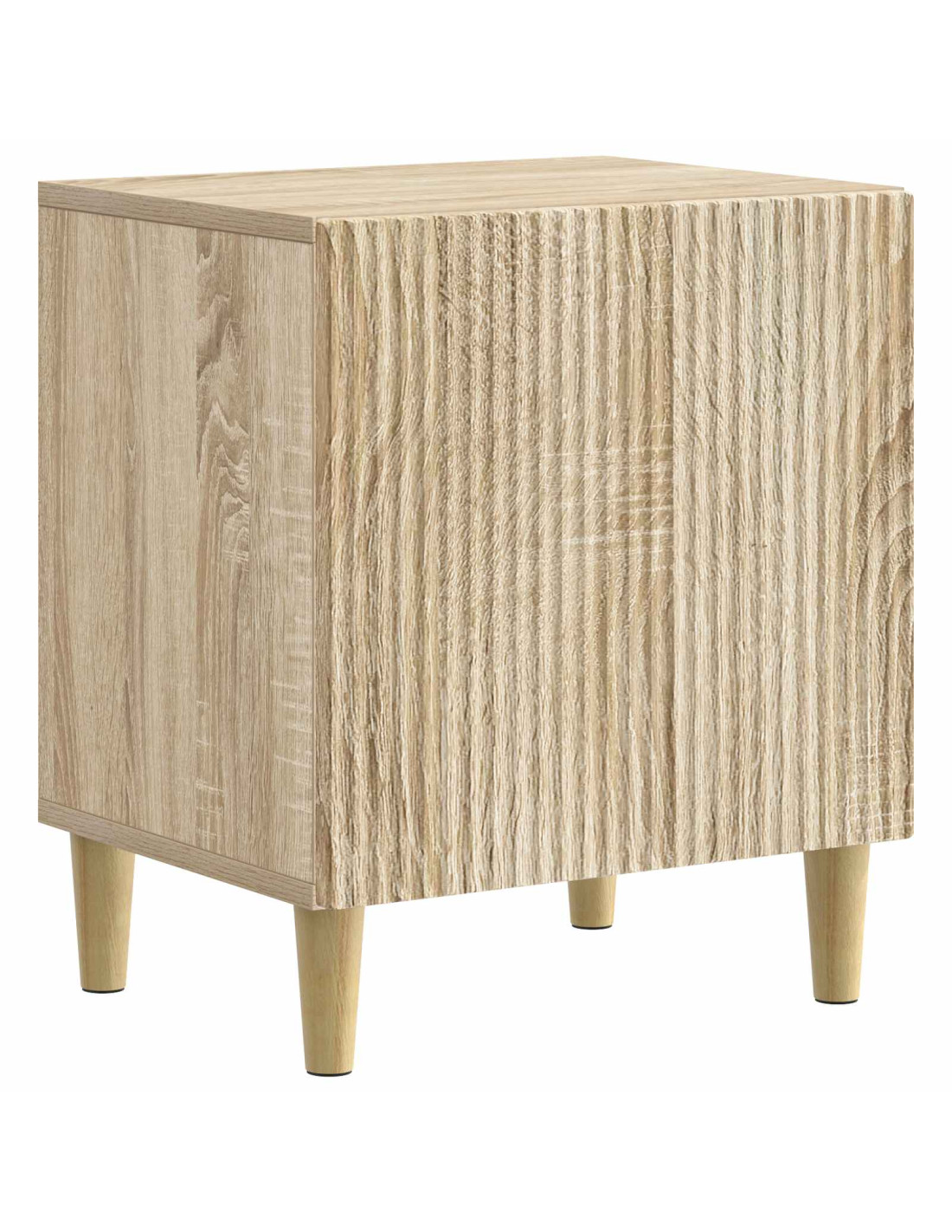 Questo comodino moderno unisce alla perfezione vintage e design contemporaneo, ed è perfetto per ogni camera. Con la giusta altezza accanto al tuo letto, è elegante e molto funzionale. La superficie è ideale per lampade, sveglie o libri che ami. Questo pezzo combina bellezza e praticità, rendendo i tuoi oggetti personali facilmente accessibili e migliorando l'atmosfera della camera. Composizione in legno ingegnerizzato Questo comodino è fatto in legno ingegnerizzato, robusto ma anche bello da vedere. Questo materiale garantisce durabilità e un tocco classico. La finitura liscia del legno resta bella nel tempo, rendendolo un ottimo elemento per la tua camera. Ampio spazio di archiviazione Ha un grande spazio con un ripiano e un compartimento, perfetto per riporre tutto ciò che ti serve. È disegnato per tenere tutto a posto, così sarà facile avere tutto a portata di mano. Porta con cerniera girevole a 90° La porta si apre facilmente, così puoi accedere in un attimo ai tuoi oggetti. Questo elemento di design migliora la funzione del comodino mantenendo uno stile vintage. Gambe rastremate eleganti Le gambe offrono stabilità e un tocco moderno, rendendo il comodino adatto a vari stili di arredamento. Manutenzione e cura semplici È facile da mantenere; basta pulirlo con un panno umido. Questo assicura che rimanga bello e funzionale negli anni.