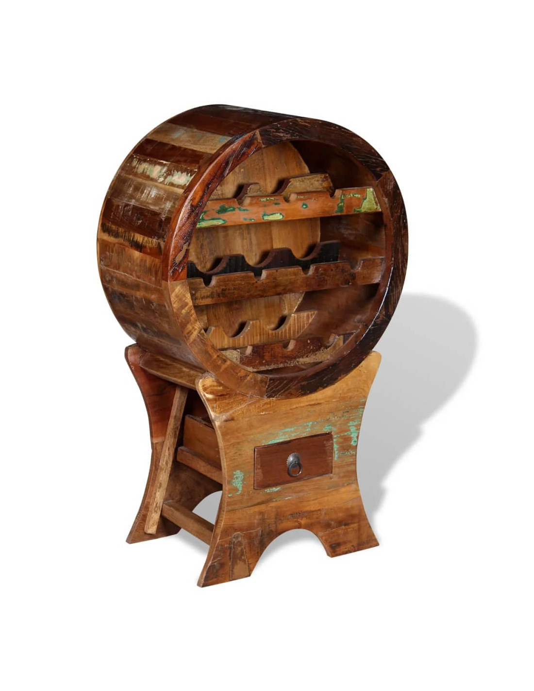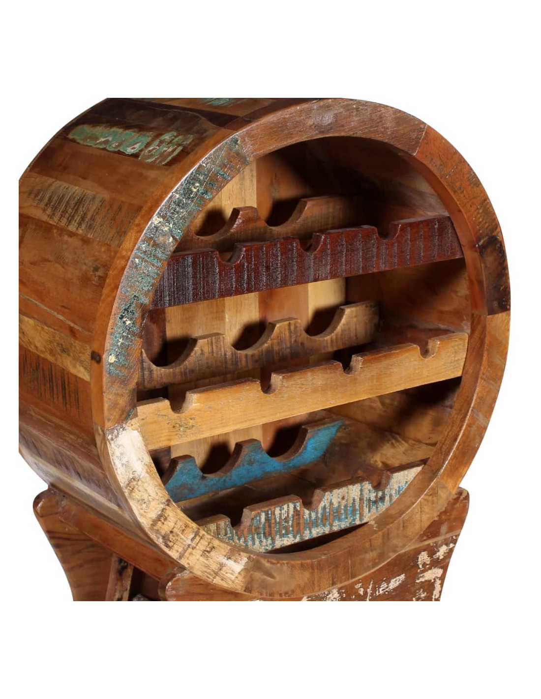 Realizzato in legno di recupero, questo portabottiglie è solido, durevole e bello e presenta le caratteristiche di legni diversi come il teak, il mango, l'acacia, il legno riciclato, legno duro, ecc. Ogni pezzo di questo mobile è unico e leggermente diverso dagli altri. Segni di usura e struttura a grana visibile conferiscono a ogni pezzo un aspetto unico e si aggiungono al suo spettacolare stile vintage.