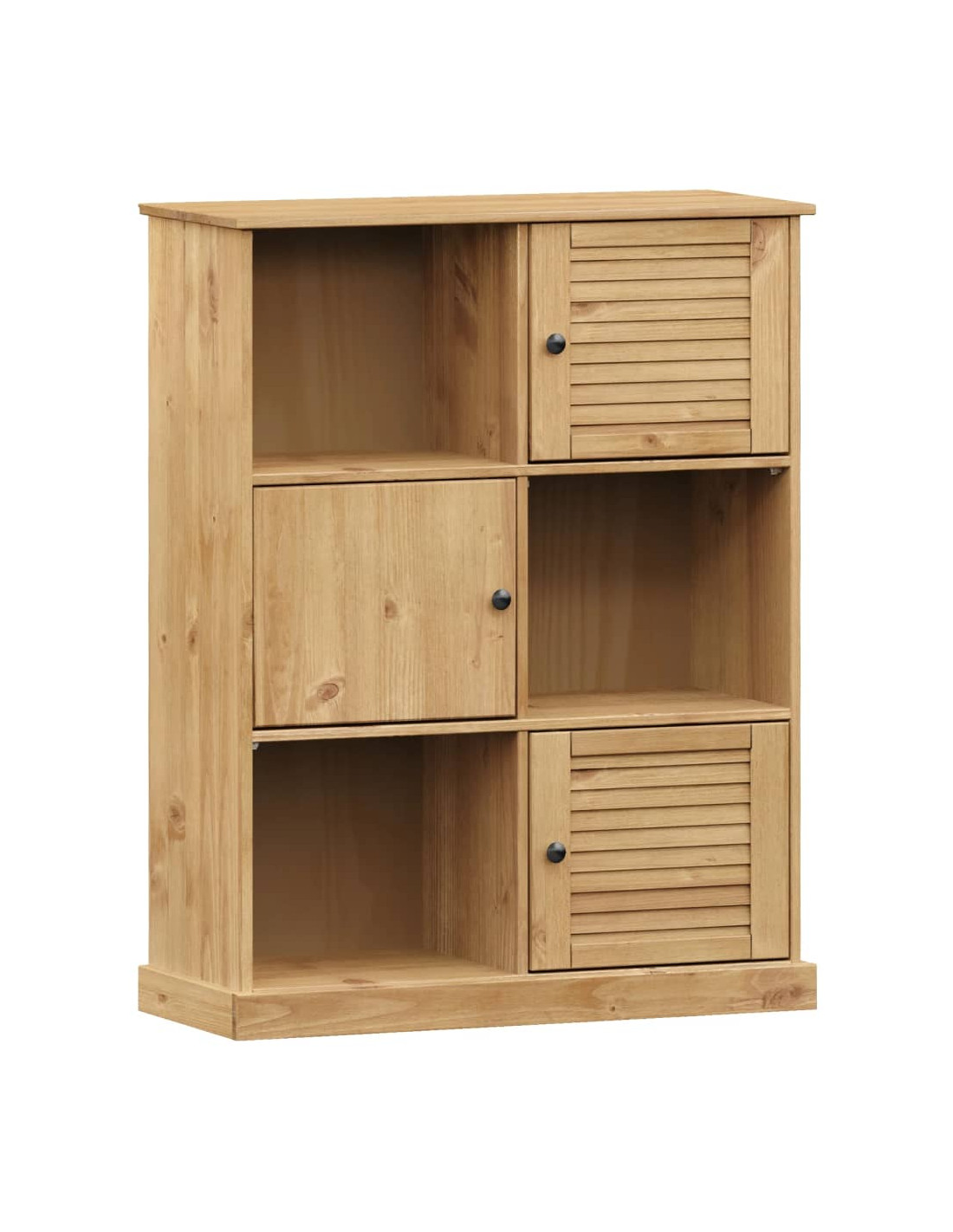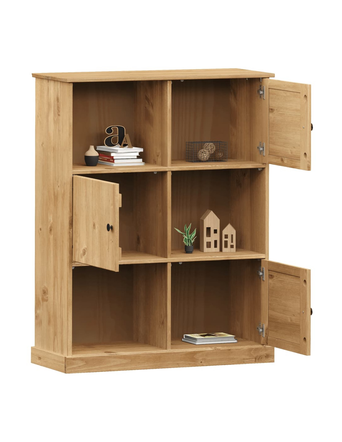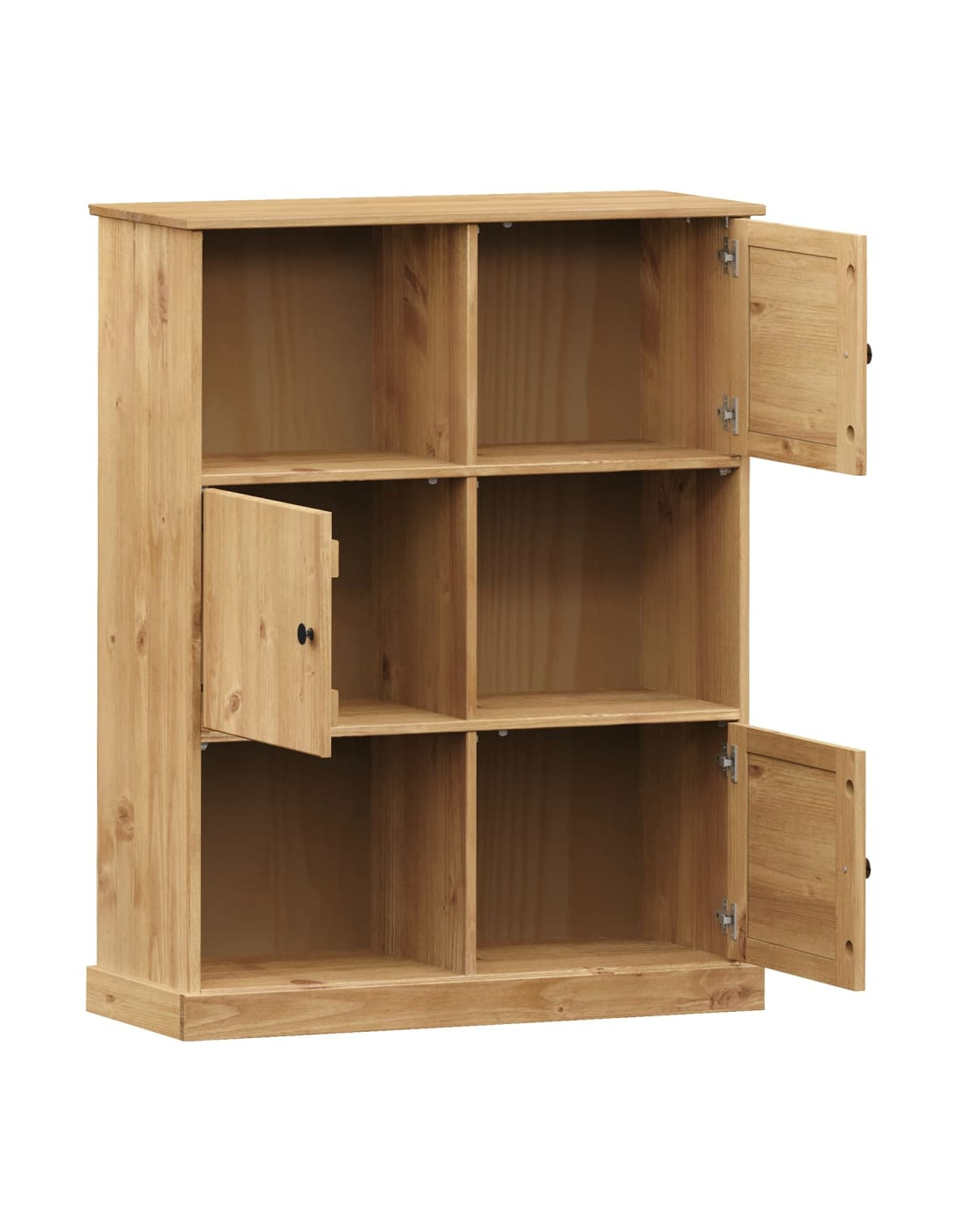 - Legno massello di pino: Il legno massello di pino è un bellissimo materiale naturale. Il legno di pino ha le venature dritte, e i nodi conferiscono al materiale il suo caratteristico aspetto rustico. Realizzata in legno massello di pino, la libreria è resistente e robusta.