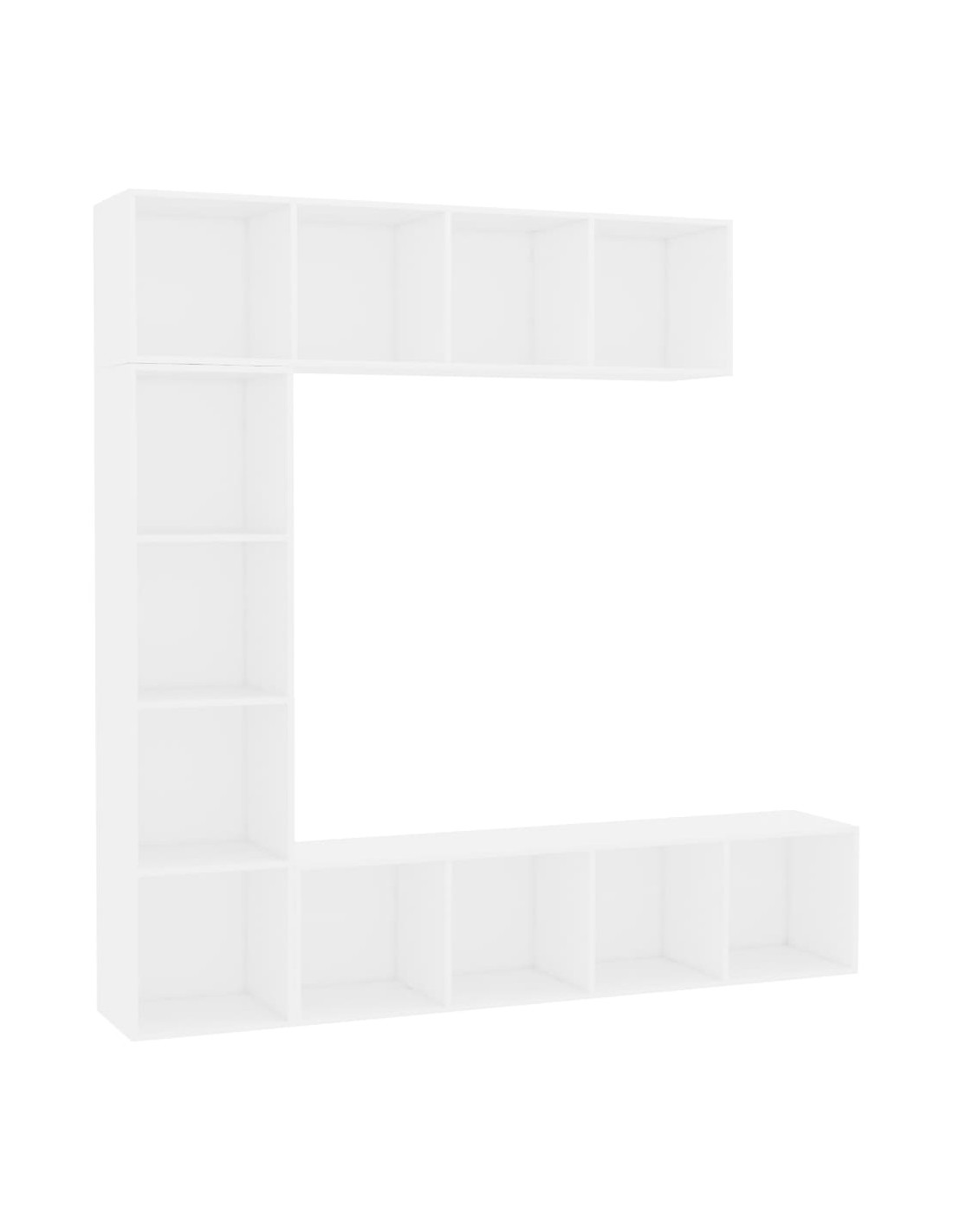 Il set è composto da 1 mobile porta TV, 1 libreria, e 1 mobile a parete, ed è progettato con 12 scomparti che offrono un ampio spazio portaoggetti per riporre riviste, libri, DVD e apparecchi multimediali in modo ordinato e a portata di mano.