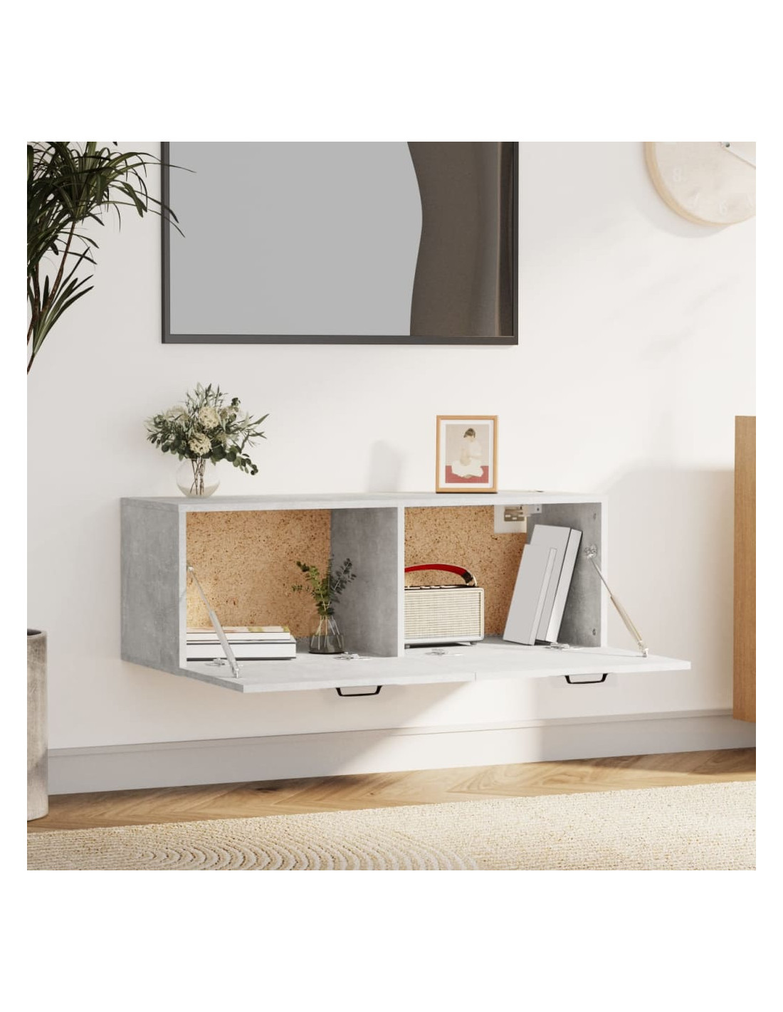 - Ampio spazio portaoggetti: L'armadietto pensile è dotato di 2 cassetti e offre ampio spazio per organizzare oggetti come lettori multimediali, riviste e altro ancora.