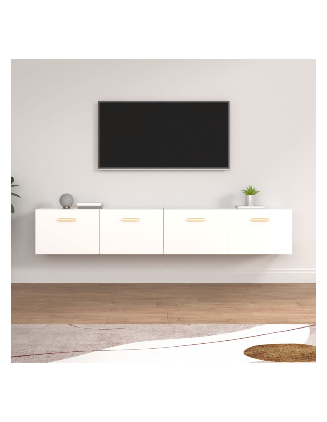 Questi comodi mobili a parete possono essere fissati facilmente al muro, il che li rende un'aggiunta pratica e decorativa al vostro arredamento. Materiale robusto: Il legno multistrato è di una qualità eccezionale e presenta una superficie liscia. È caratterizzato da robustezza, stabilità e resistenza all'umidità.Ampio spazio portaoggetti: Ciascun mobile pensile è dotato di 2 scomparti e offre ampio spazio dove organizzare oggetti come lettori multimediali, riviste e altro.Funzione di montaggio a parete: Questo mobiletto portaoggetti non occupa spazio sul pavimento. Potete appenderlo facilmente alla parete.Design elegante: Il design semplice di questo armadietto pensile si integra facilmente a ogni stanza e arredamento, qualsiasi stile abbiano. Aggiunge un tocco di eleganza e vivacità alla vostra casa. Nota:Viti e tasselli per l'interno della parete non sono inclusi. Utilizzare viti e tasselli adatti alle vostre pareti. Se avete dubbi chiedete un consiglio professionale. Leggere e seguire attentamente le istruzioni.Ciascun prodotto viene fornito con un manuale di assemblaggio nella confezione per un facile montaggio.