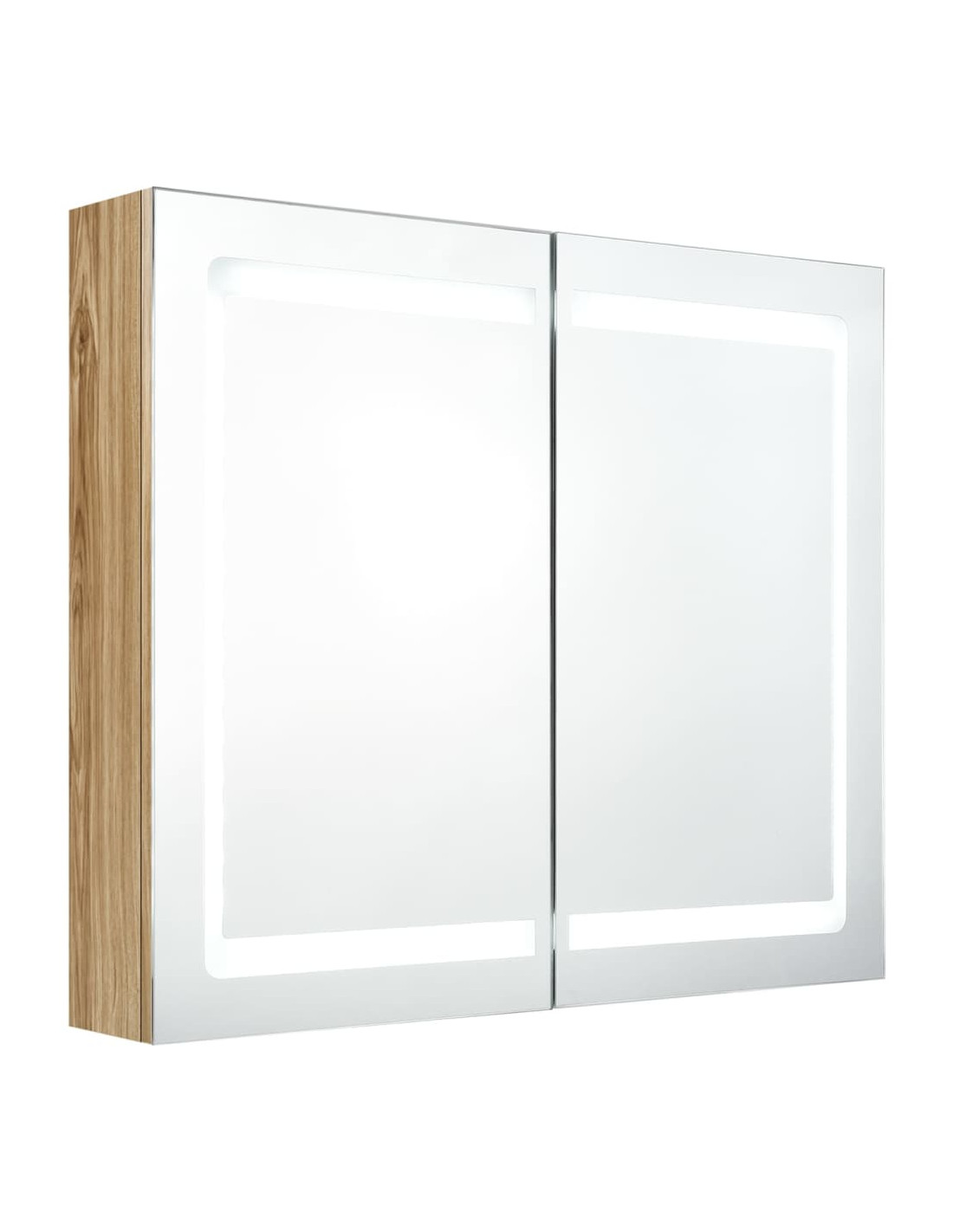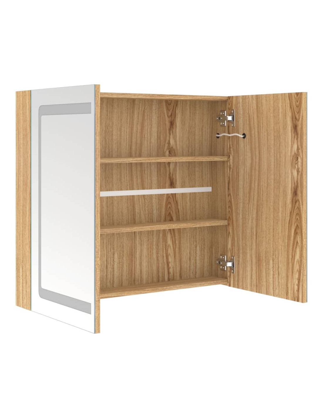 Questo pensile è realizzato in MDF con finitura melaminica, garantendo un uso a lungo termine. Dotato di due strisce luminose a LED ad alta efficienza energetica, permette di specchiarvi e vedervi in modo nitido, facilitando il trucco, le acconciature, la cura della pelle e può illuminare la vostra stanza, il viso e il vostro sorriso. All'interno è caratterizzato da 3 ripiani, che offrono ampio spazio per riporre tutti i vostri articoli da toeletta e accessori di bellezza. Potete accendere/spegnere facilmente la luce con il pulsante in basso. Elegante e funzionale, questo mobile renderà sicuramente eccezionale il design dei vostri interni!