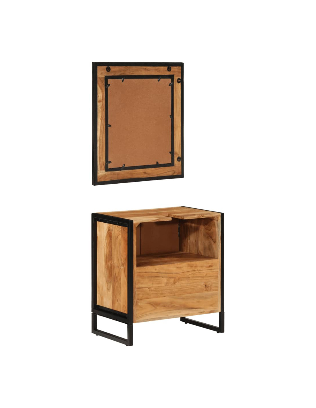 - Materiale: Legno massello di acacia con finitura naturale, ferro verniciato a polvere, vetro