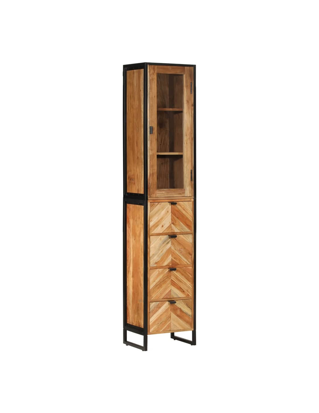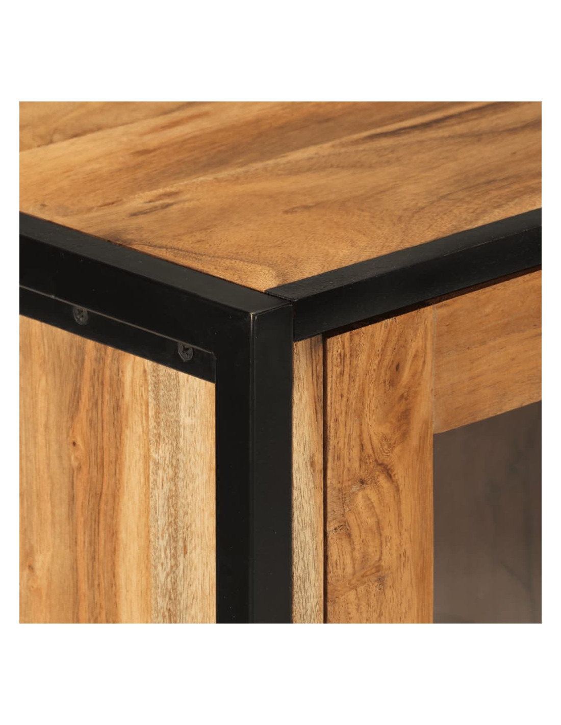 - Materiale: Legno massello di acacia con finitura naturale, ferro verniciato a polvere, vetro