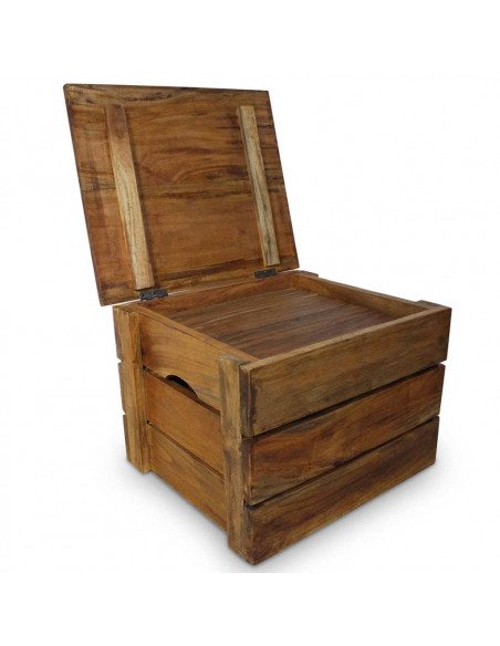 Poiché le casse portaoggetti sono fatte in legno di recupero utilizzato, hanno le caratteristiche di diversi tipi di legno come il mogano, il teak, il legno di mango, l'acacia, ecc. È possibile che vi siano segni lasciati da chiodi, viti o bulloni, insieme ad altre imperfezioni che confermano l'autenticità del prodotto. Le imperfezioni rivelano una ricca storia e non sono state fatte intenzionalmente. Il legno è ricavato da alberi caduti naturalmente, barche di legno, case di legno, ecc. Ogni pezzo di questo mobile è unico ed è leggermente diverso dall'altro. I segni di usura e l'artigianalità di queste casse, interamente realizzate a mano, conferiscono un aspetto unico e uno stile vintage spettacolare.