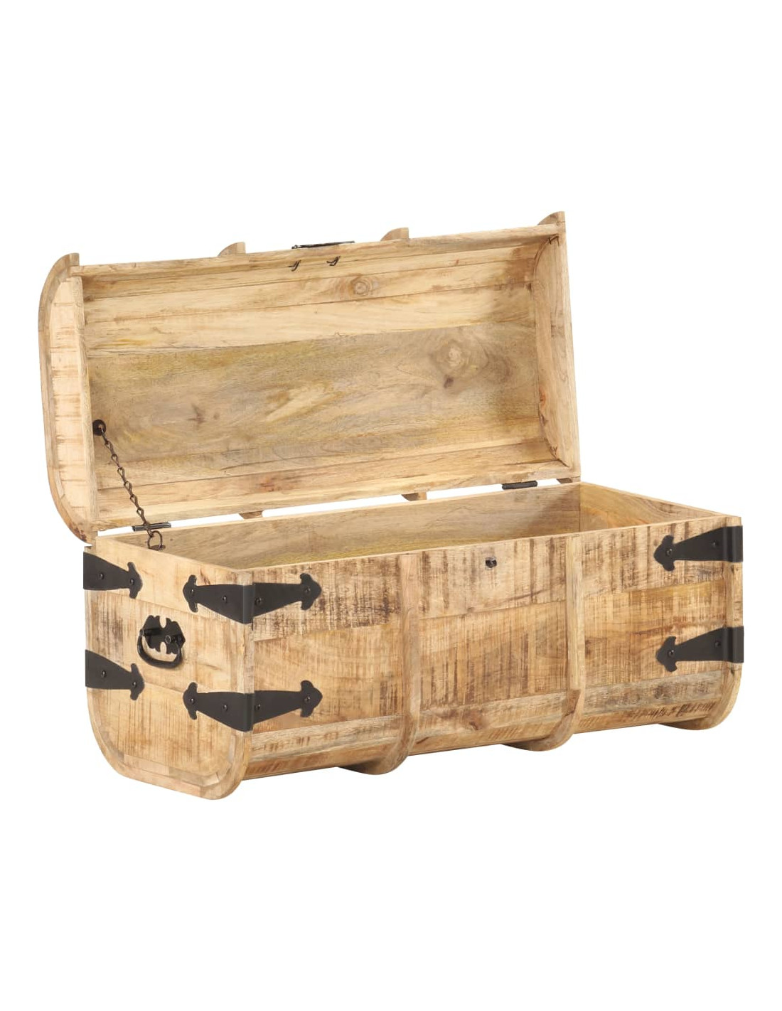 Il legno massello di mango è un legno duro tropicale. Ha la forza di sopportare il peso e resiste anche all'usura del tempo. Inoltre, la squisita fattura e le bellissime venature del legno rendono ogni baule leggermente diverso dagli altri. Ogni baule in legno è dotato di un fermo sul davanti e due comode maniglie sul lato.