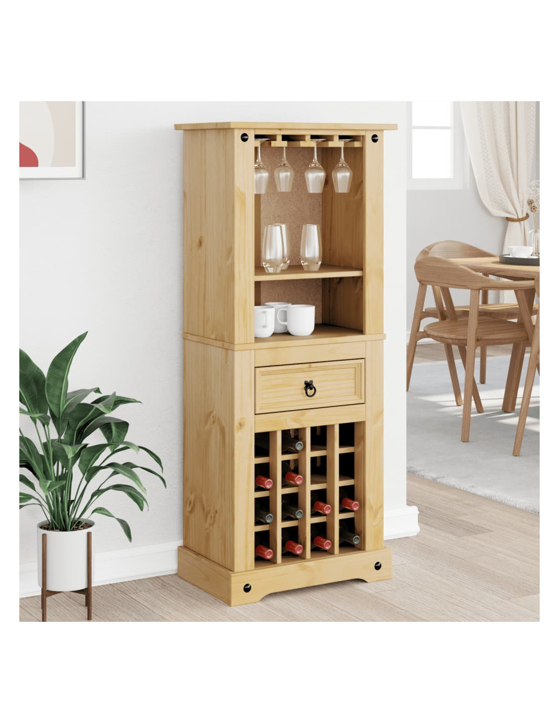 - Ampio spazio portaoggetti: Il portavini con un cassetto e dei ripiani offre un ampio spazio per conservare il vostro vino.