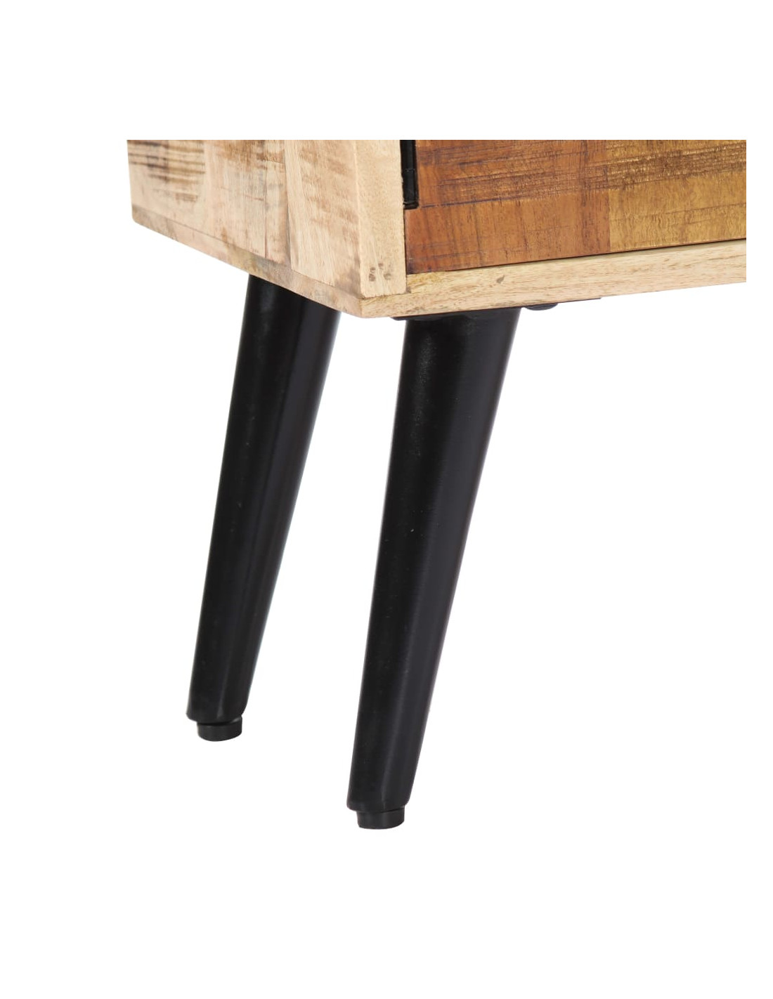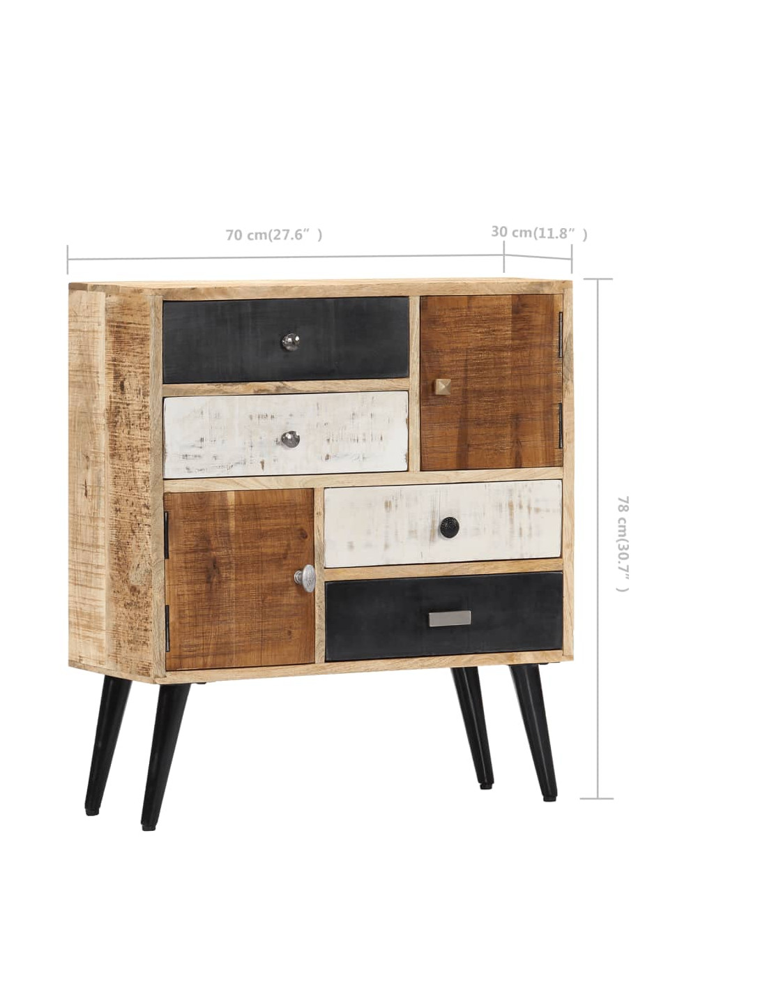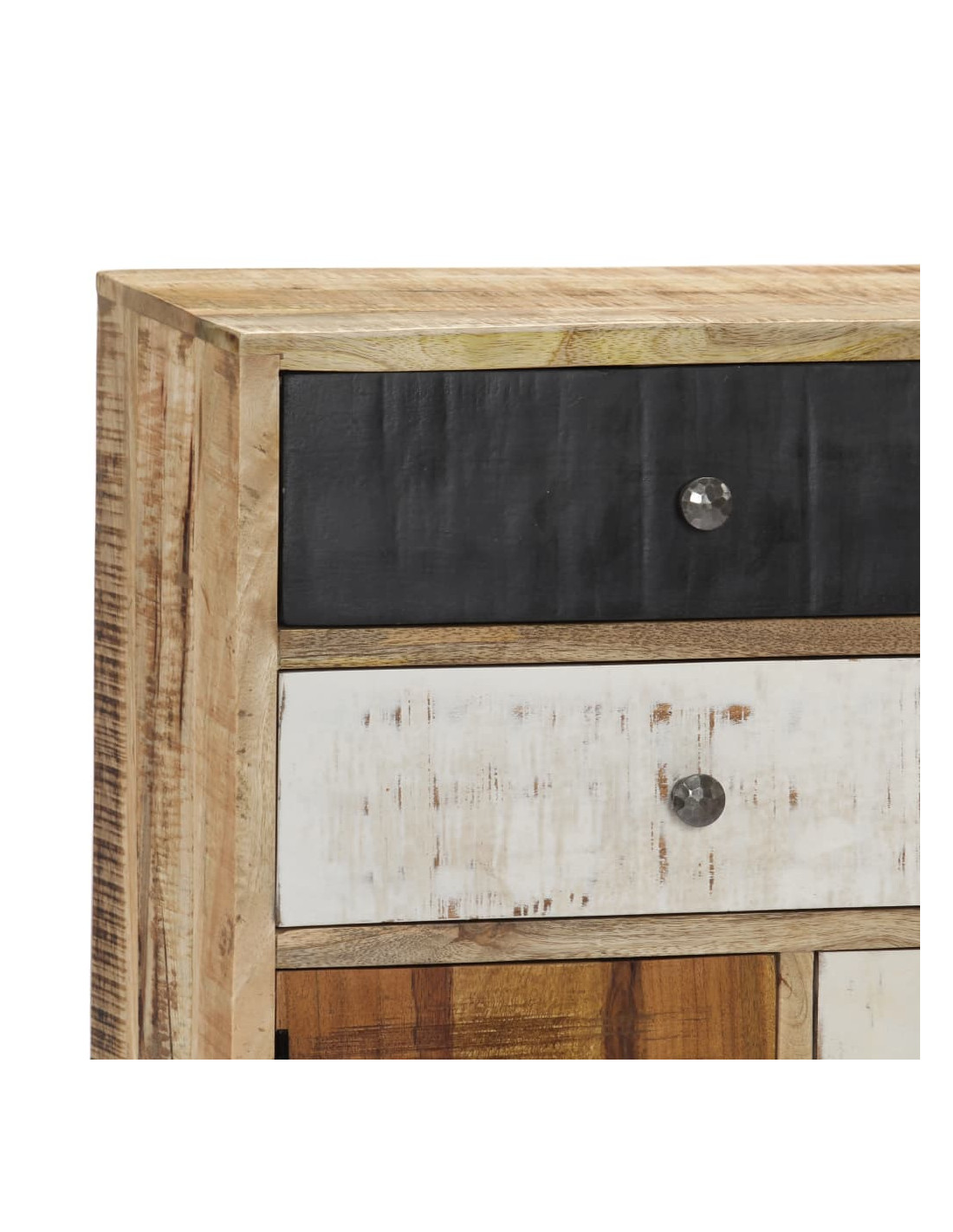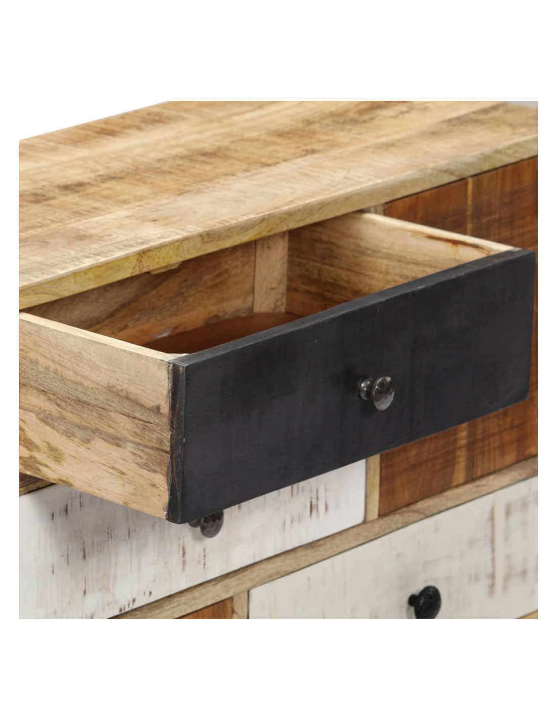 Realizzata in legno massello di mango, la credenza è stata trattata con una bellissima finitura, lucidatura e laccatura, che le conferiscono un aspetto raffinato. Il legno di mango è un legno duro e denso che presenta splendide striature e contorni marroni e dorati sulla sua superficie. È dotata di 4 cassetti e 2 ante, che offrono ampio spazio per riporre libri, riviste, chiavi e altri oggetti. La credenza è facile da assemblare e si pulisce con un panno umido.