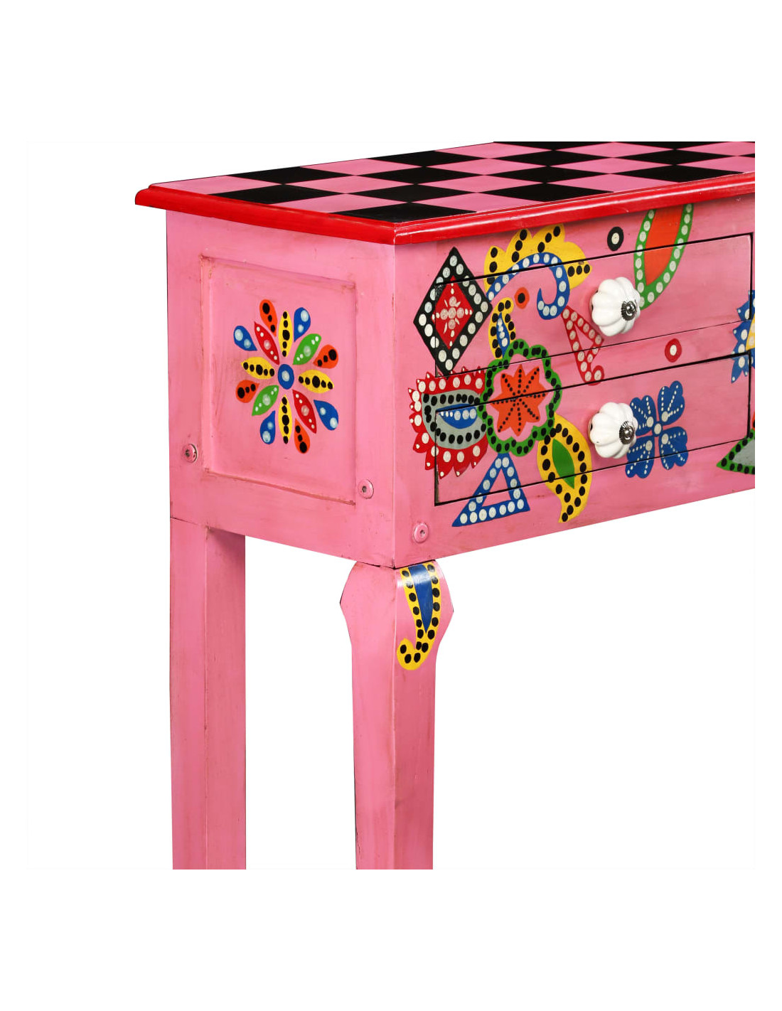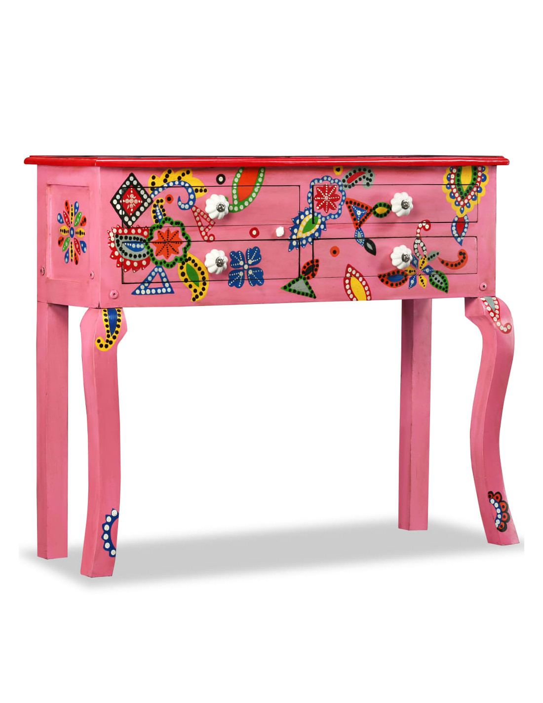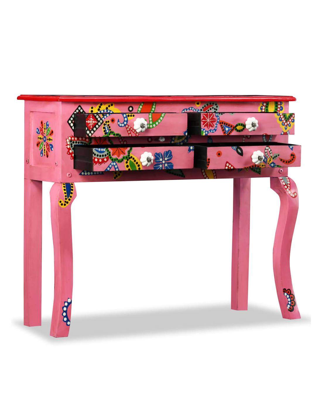 Questa bellissima consolle colpisce l'attenzione e aggiunge un tocco di colore al salotto o alla camera da letto. Grazie al suo design sorprendente, questo mobile, dipinto a mano, costituirà un oggetto di conversazione con gli ospiti.