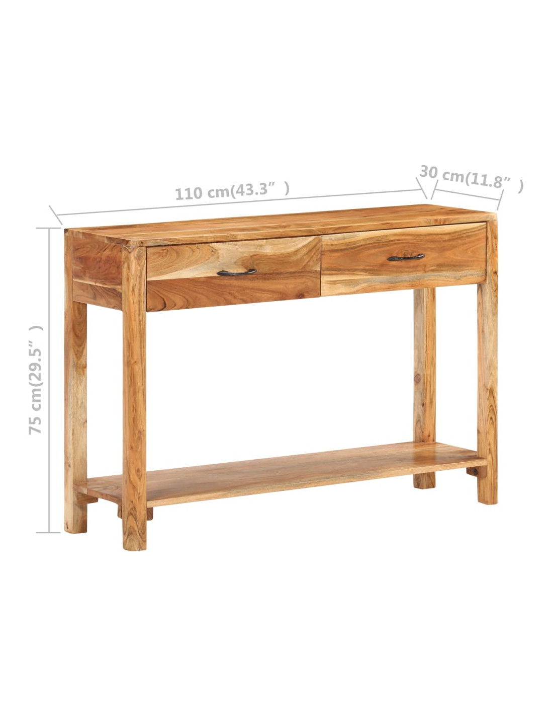 Il mobile laterale è realizzato a mano in legno massello di acacia con una finitura naturale, che lo rende stabile e resistente. La lavorazione artigianale e le bellissime venature del legno rendono ogni mobile unico e leggermente diverso dagli altri. È dotato di due cassetti e un ripiano inferiore per riporre i vostri oggetti. Questo armadio può essere utilizzato anche come tavolo consolle, armadio sotto lo specchio, ecc.