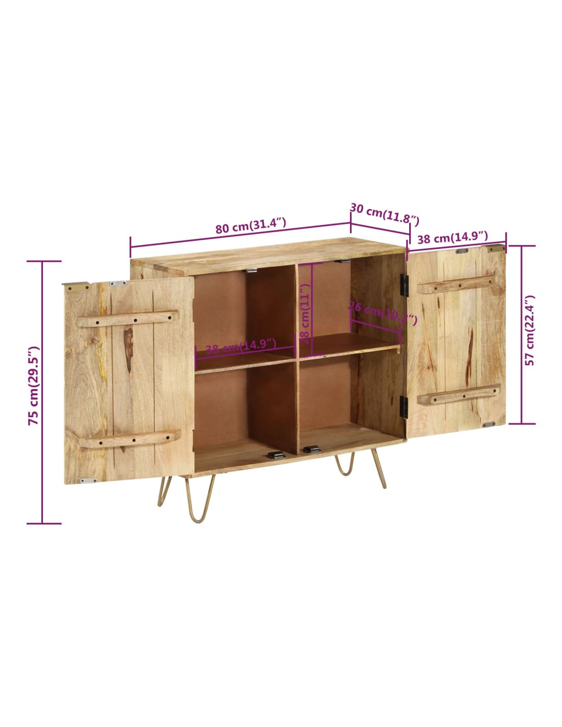 - Dimensioni: 80 x 30 x 75 cm (L x P x A)