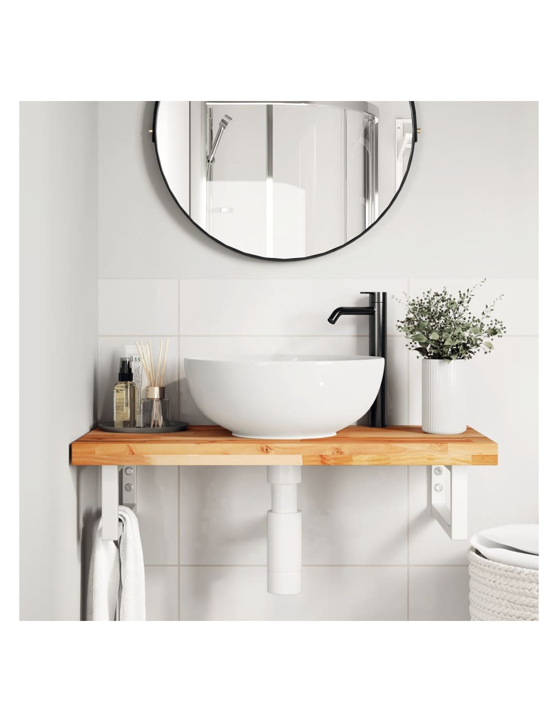 Il ripiano per lavabo a parete si fissa saldamente alla parete, offrendo una soluzione elegante e salvaspazio per il vostro bagno.