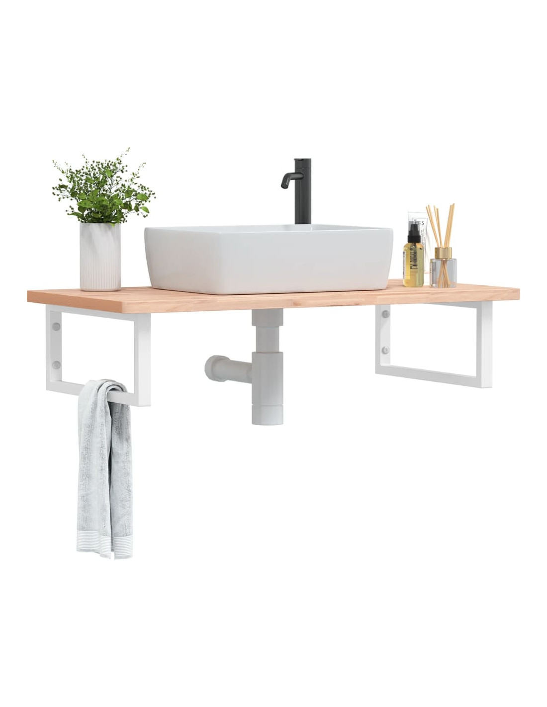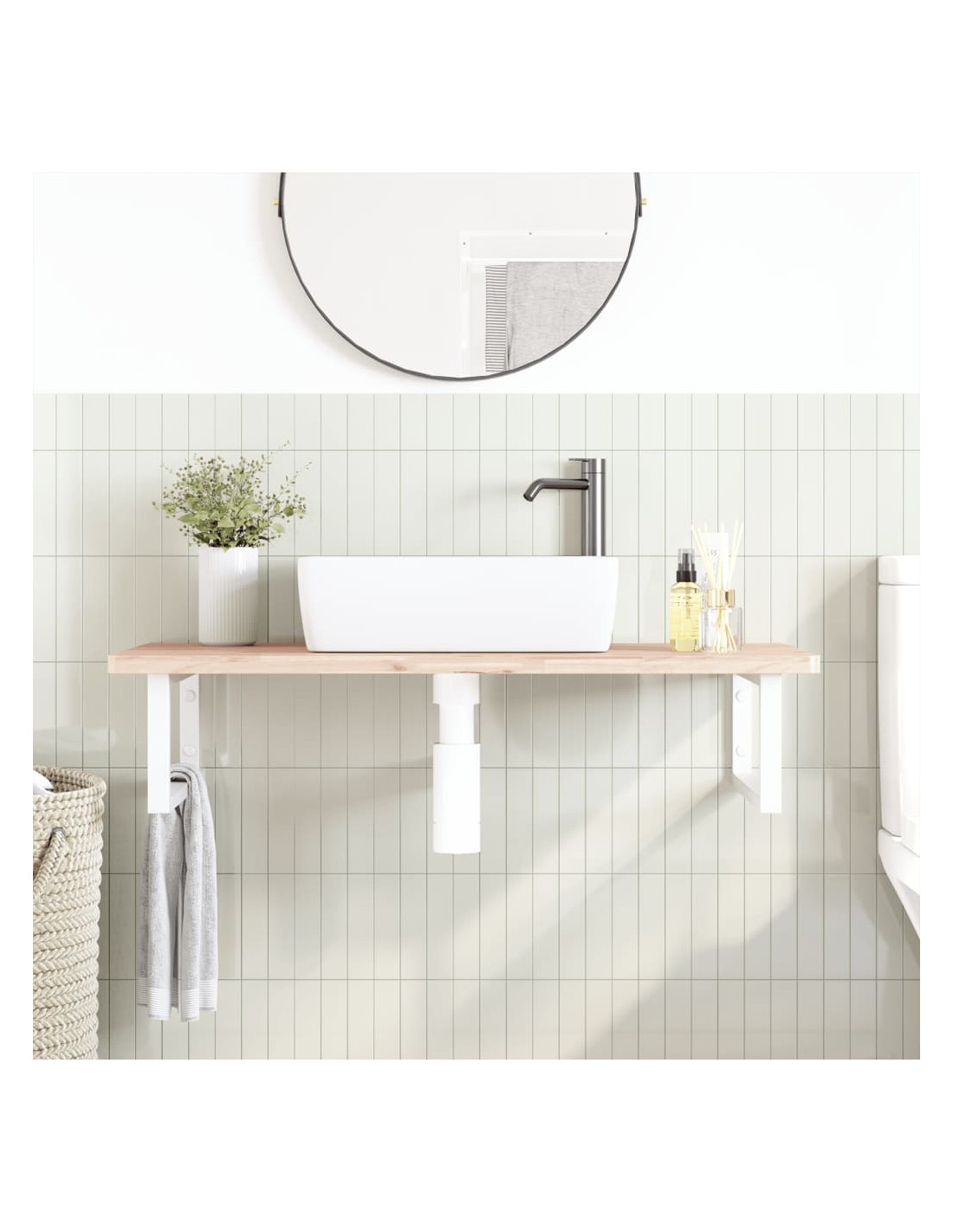 Il ripiano per lavabo a parete si fissa saldamente alla parete, offrendo una soluzione elegante e salvaspazio per il vostro bagno. Robusto e duraturo: Questo ripiano per lavabo è abbinato con una struttura in acciaio e un piano in legno massello di faggio, che lo rendono robusto, stabile e duraturo. Salvaspazio: il ripiano lavabo sospeso ha ampio spazio per riporre creme e piccoli oggetti. Grazie alla forma rettangolare, potete appendere asciugamani o altro sul supporto per risparmiare spazio. Facile da usare: il piano di lavoro non è forato per consentire il montaggio del lavabo a sinistra, a destra o al centro, a seconda delle esigenze della stanza. Grazie ai fori predisposti nel supporto, può essere facilmente assemblato con il piano e montato a parete. Ampie applicazioni: grazie al suo design moderno, offre spazio aggiuntivo per vari tipi di bagni. Buono a sapersi:Le viti non sono incluse, è possibile acquistarle separatamente in base alle informazioni fornite di seguito. Fissaggio a parete: 2 viti di espansione M8 per staffa Piano in legno: 2 viti M5x18 (T=2) o 2 viti M5x20 (T=2,5/4cm) per staffa