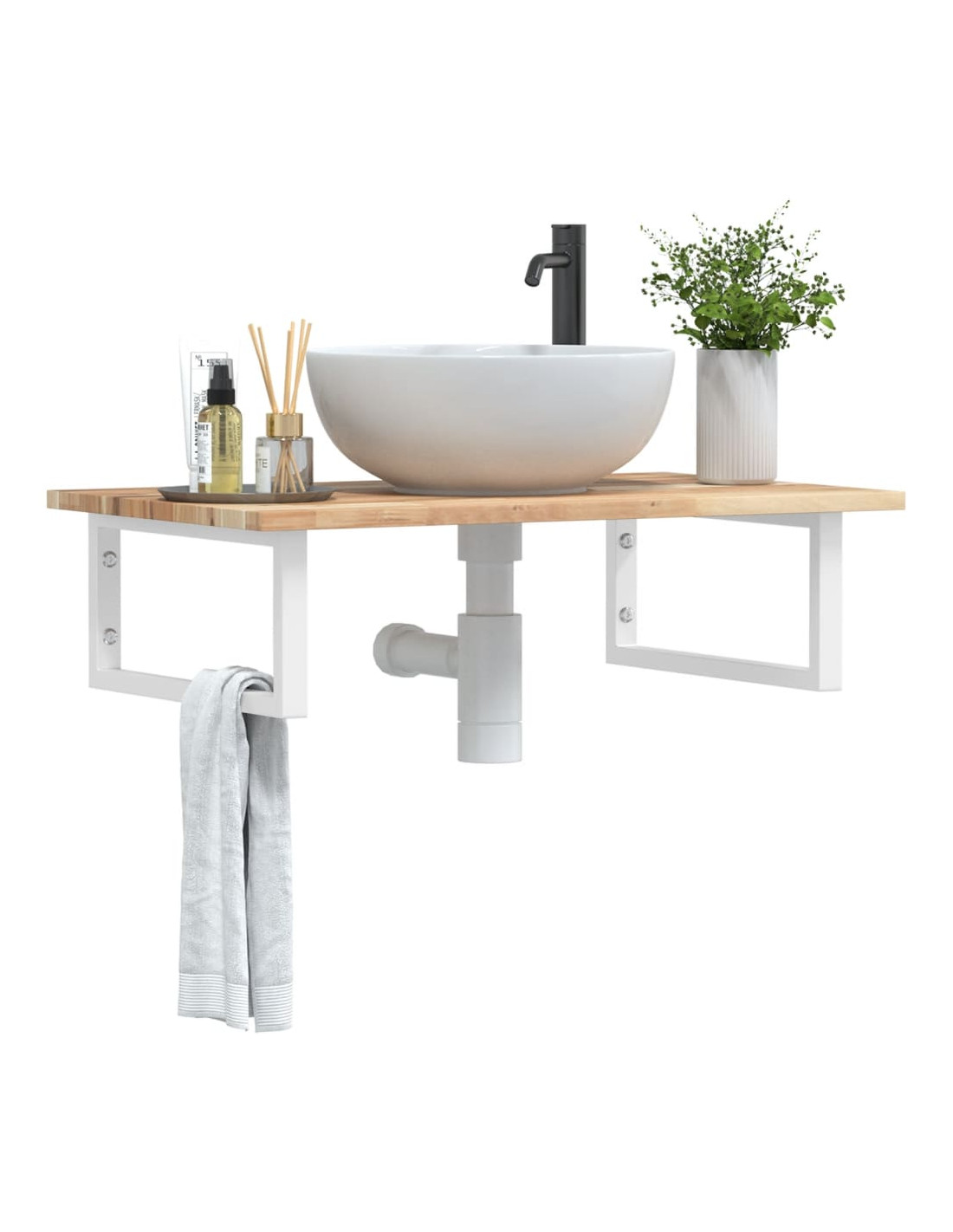 Il ripiano per lavabo a parete si fissa saldamente alla parete, offrendo una soluzione elegante e salvaspazio per il vostro bagno. Robusto e duraturo: Questo ripiano per lavabo è abbinato con una struttura in acciaio e un piano in legno massello di acacia, che lo rendono robusto, stabile e duraturo.Salvaspazio: il ripiano lavabo sospeso ha ampio spazio per riporre creme e piccoli oggetti. Grazie alla forma rettangolare, potete appendere asciugamani o altro sul supporto per risparmiare spazio.Facile da usare: il piano di lavoro non è forato per consentire il montaggio del lavabo a sinistra, a destra o al centro, a seconda delle esigenze della stanza. Grazie ai fori predisposti nel supporto, può essere facilmente assemblato con il piano e montato a parete.Ampie applicazioni: grazie al suo design moderno, offre spazio aggiuntivo per vari tipi di bagni. Buono a sapersi:Le viti non sono incluse, è possibile acquistarle separatamente in base alle informazioni fornite di seguito.Fissaggio a parete: 2 viti di espansione M8 per staffaPiano in legno: 2 viti M5x18 (T=2) o 2 viti M5x20 (T=2,5/4cm) per staffa