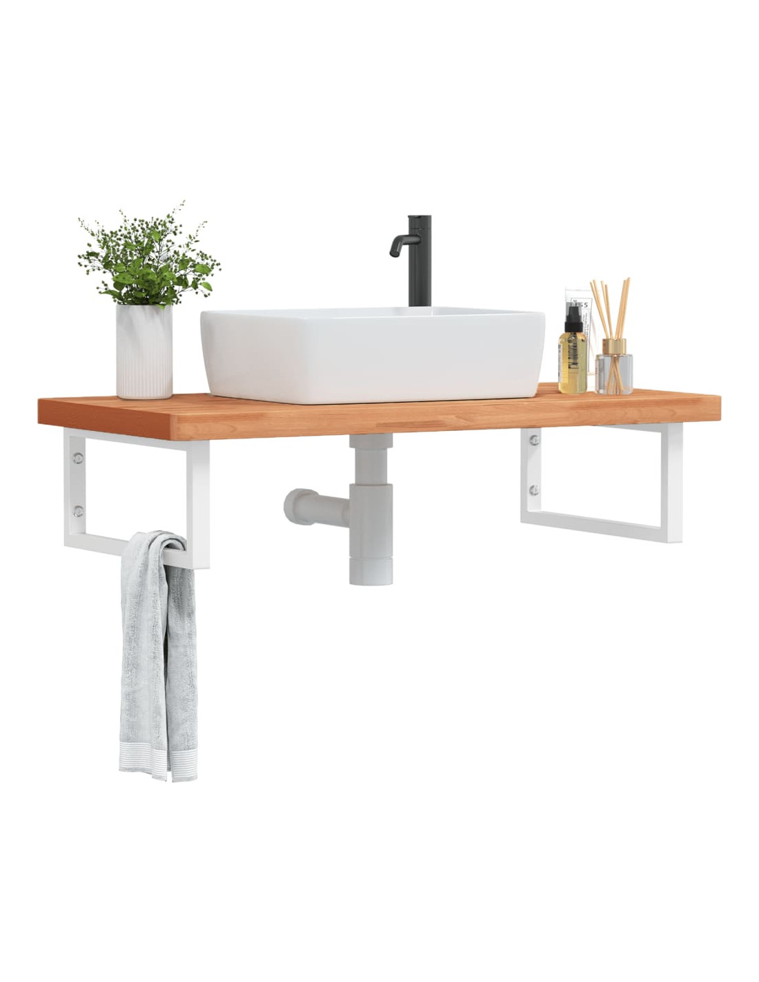 Il ripiano per lavabo a parete si fissa saldamente alla parete, offrendo una soluzione elegante e salvaspazio per il vostro bagno. Robusto e duraturo: Questo ripiano per lavabo è abbinato con una struttura in acciaio e un piano in legno massello di faggio, che lo rendono robusto, stabile e duraturo. Salvaspazio: il ripiano lavabo sospeso ha ampio spazio per riporre creme e piccoli oggetti. Grazie alla forma rettangolare, potete appendere asciugamani o altro sul supporto per risparmiare spazio. Facile da usare: il piano di lavoro non è forato per consentire il montaggio del lavabo a sinistra, a destra o al centro, a seconda delle esigenze della stanza. Grazie ai fori predisposti nel supporto, può essere facilmente assemblato con il piano e montato a parete. Ampie applicazioni: grazie al suo design moderno, offre spazio aggiuntivo per vari tipi di bagni. Buono a sapersi:Le viti non sono incluse, è possibile acquistarle separatamente in base alle informazioni fornite di seguito. Fissaggio a parete: 2 viti di espansione M8 per staffa Piano in legno: 2 viti M5x18 (T=2) o 2 viti M5x20 (T=2,5/4cm) per staffa