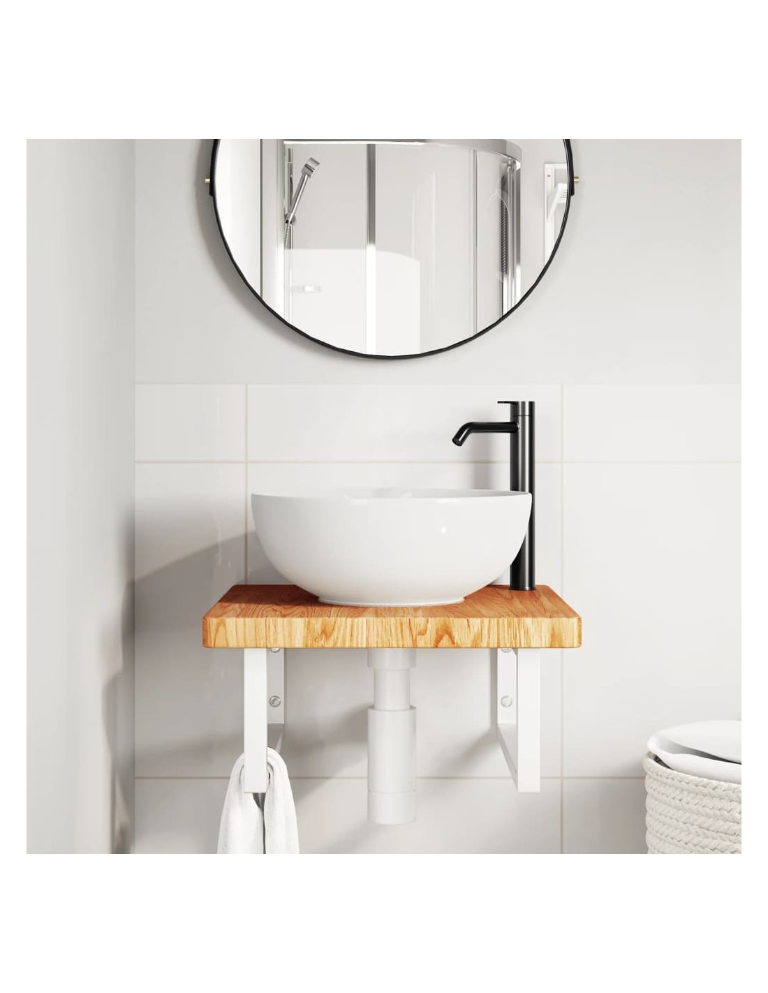 Il ripiano per lavabo a parete si fissa saldamente alla parete, offrendo una soluzione elegante e salvaspazio per il vostro bagno. Robusto e duraturo: questo ripiano per lavabo è combinato con una struttura in acciaio e un piano in legno massello di rovere, che lo rendono robusto, stabile e duraturo. Salvaspazio: il ripiano lavabo sospeso ha ampio spazio per riporre creme e piccoli oggetti. Grazie alla forma rettangolare, potete appendere asciugamani o altro sul supporto per risparmiare spazio. Facile da usare: il piano di lavoro non è forato per consentire il montaggio del lavabo a sinistra, a destra o al centro, a seconda delle esigenze della stanza. Grazie ai fori predisposti nel supporto, può essere facilmente assemblato con il piano e montato a parete. Ampie applicazioni: grazie al suo design moderno, offre spazio aggiuntivo per vari tipi di bagni. Buono a sapersi:Le viti non sono incluse, è possibile acquistarle separatamente in base alle informazioni fornite di seguito. Fissaggio a parete: 2 viti di espansione M8 per staffa Piano in legno: 2 viti M5x18 (T=2) o 2 viti M5x20 (T=2,5/4cm) per staffa