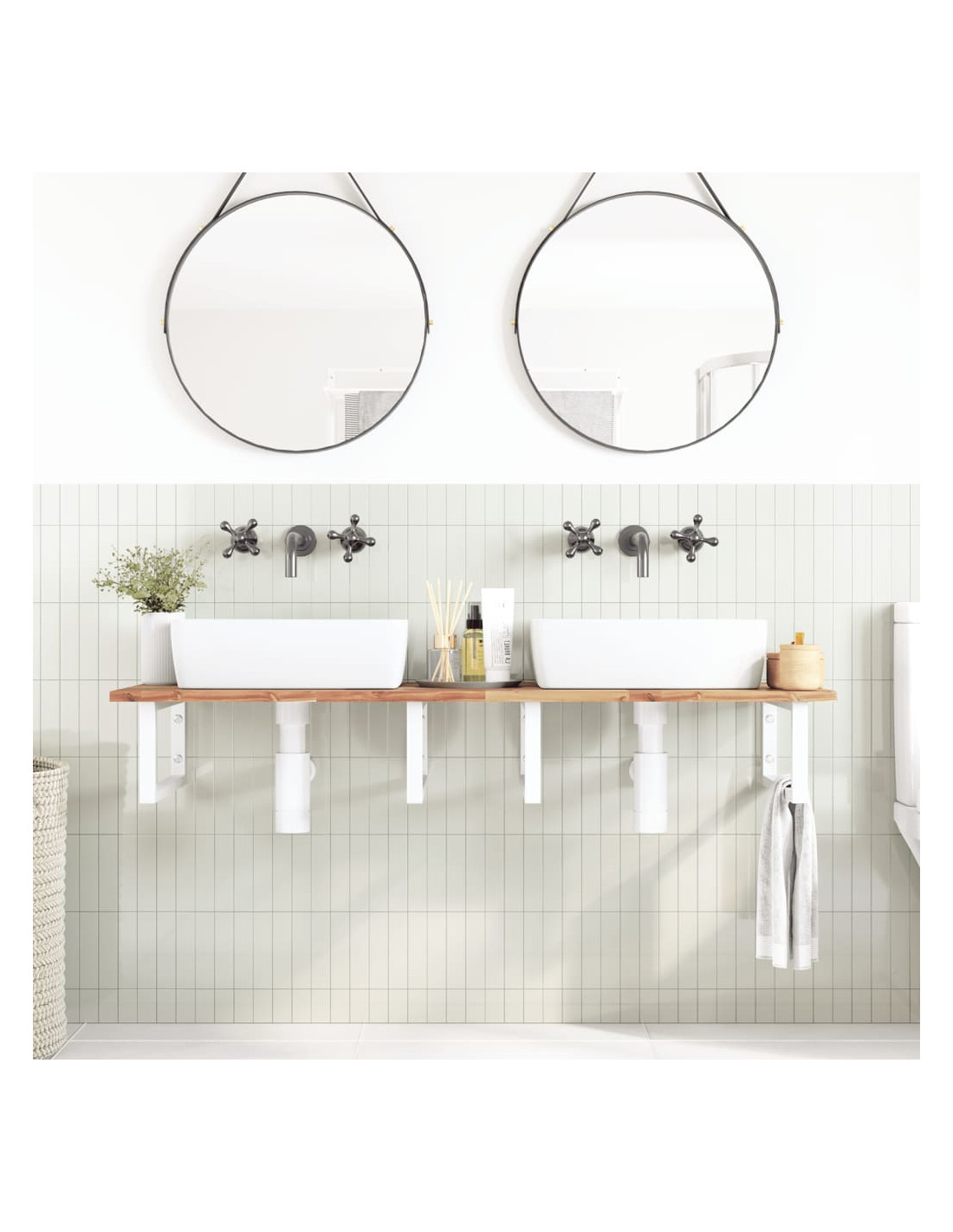 Il ripiano per lavabo a parete si fissa saldamente alla parete, offrendo una soluzione elegante e salvaspazio per il vostro bagno. Robusto e duraturo: Questo ripiano per lavabo è abbinato con una struttura in acciaio e un piano in legno massello di acacia, che lo rendono robusto, stabile e duraturo.Salvaspazio: il ripiano lavabo sospeso ha ampio spazio per riporre creme e piccoli oggetti. Grazie alla forma rettangolare, potete appendere asciugamani o altro sul supporto per risparmiare spazio.Facile da usare: il piano di lavoro non è forato per consentire il montaggio del lavabo a sinistra, a destra o al centro, a seconda delle esigenze della stanza. Grazie ai fori predisposti nel supporto, può essere facilmente assemblato con il piano e montato a parete.Ampie applicazioni: grazie al suo design moderno, offre spazio aggiuntivo per vari tipi di bagni. Buono a sapersi:Le viti non sono incluse, è possibile acquistarle separatamente in base alle informazioni fornite di seguito.Fissaggio a parete: 2 viti di espansione M8 per staffaPiano in legno: 2 viti M5x18 (T=2) o 2 viti M5x20 (T=2,5/4cm) per staffa