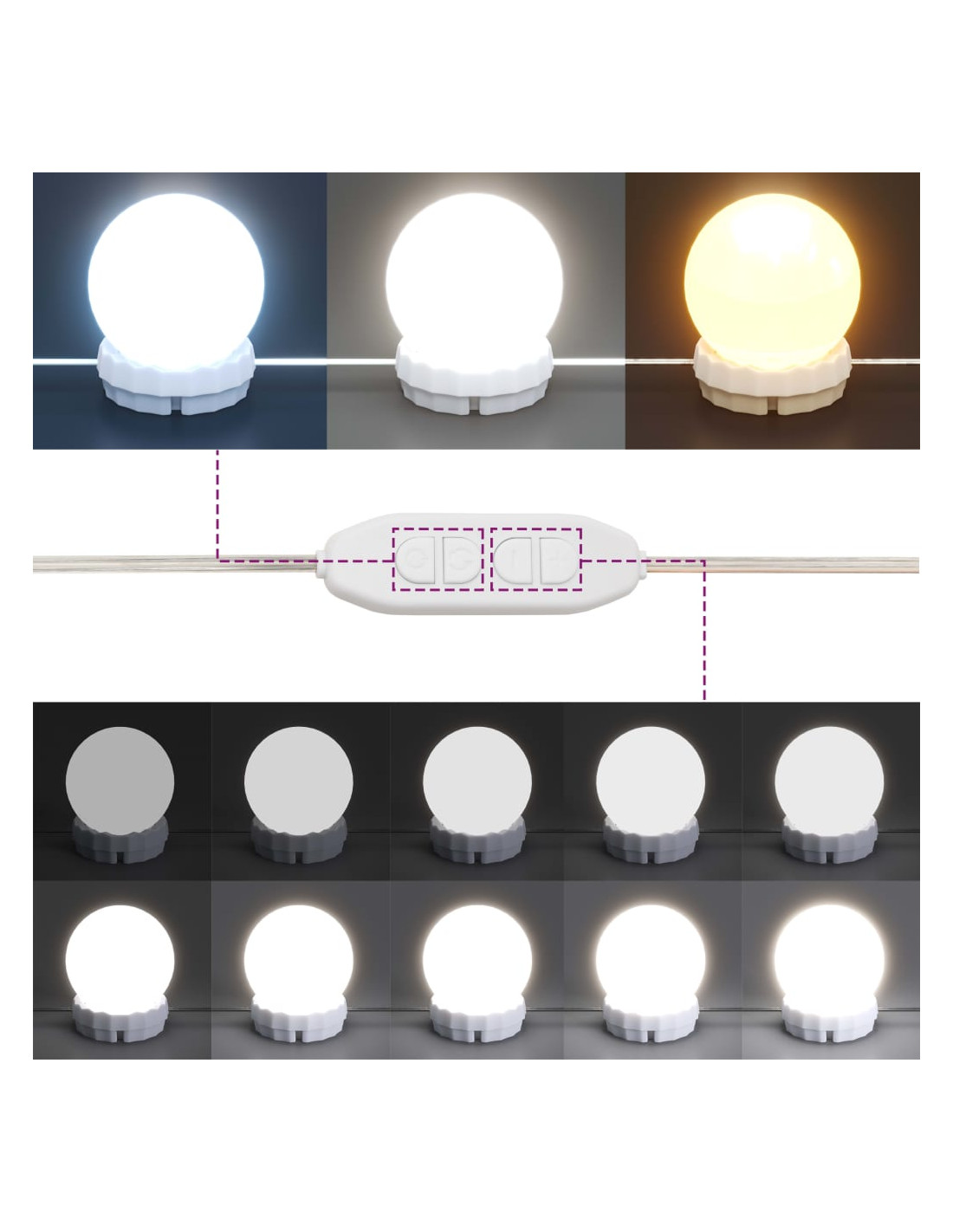 - Luce a LED: Il tavolo da trucco è dotato di lampadine a LED con USB, che consentono di cambiare facilmente la modalità dal bianco caldo a bianco freddo. Le lampadine a LED in dotazione attorno allo specchio esaltano la vostra bellezza.