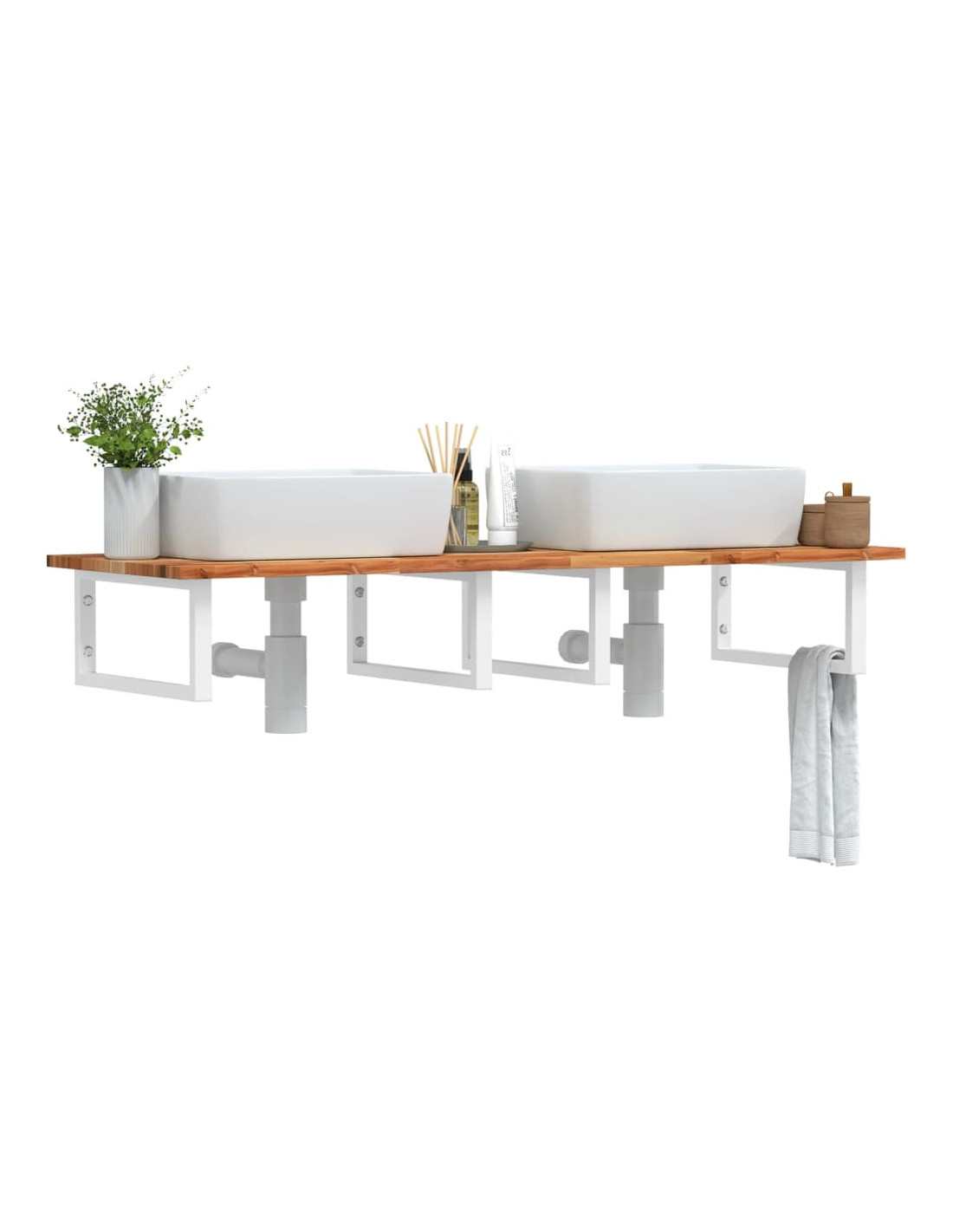 Il ripiano per lavabo a parete si fissa saldamente alla parete, offrendo una soluzione elegante e salvaspazio per il vostro bagno. Robusto e duraturo: Questo ripiano per lavabo è abbinato con una struttura in acciaio e un piano in legno massello di acacia, che lo rendono robusto, stabile e duraturo.Salvaspazio: il ripiano lavabo sospeso ha ampio spazio per riporre creme e piccoli oggetti. Grazie alla forma rettangolare, potete appendere asciugamani o altro sul supporto per risparmiare spazio.Facile da usare: il piano di lavoro non è forato per consentire il montaggio del lavabo a sinistra, a destra o al centro, a seconda delle esigenze della stanza. Grazie ai fori predisposti nel supporto, può essere facilmente assemblato con il piano e montato a parete.Ampie applicazioni: grazie al suo design moderno, offre spazio aggiuntivo per vari tipi di bagni. Buono a sapersi:Le viti non sono incluse, è possibile acquistarle separatamente in base alle informazioni fornite di seguito.Fissaggio a parete: 2 viti di espansione M8 per staffaPiano in legno: 2 viti M5x18 (T=2) o 2 viti M5x20 (T=2,5/4cm) per staffa