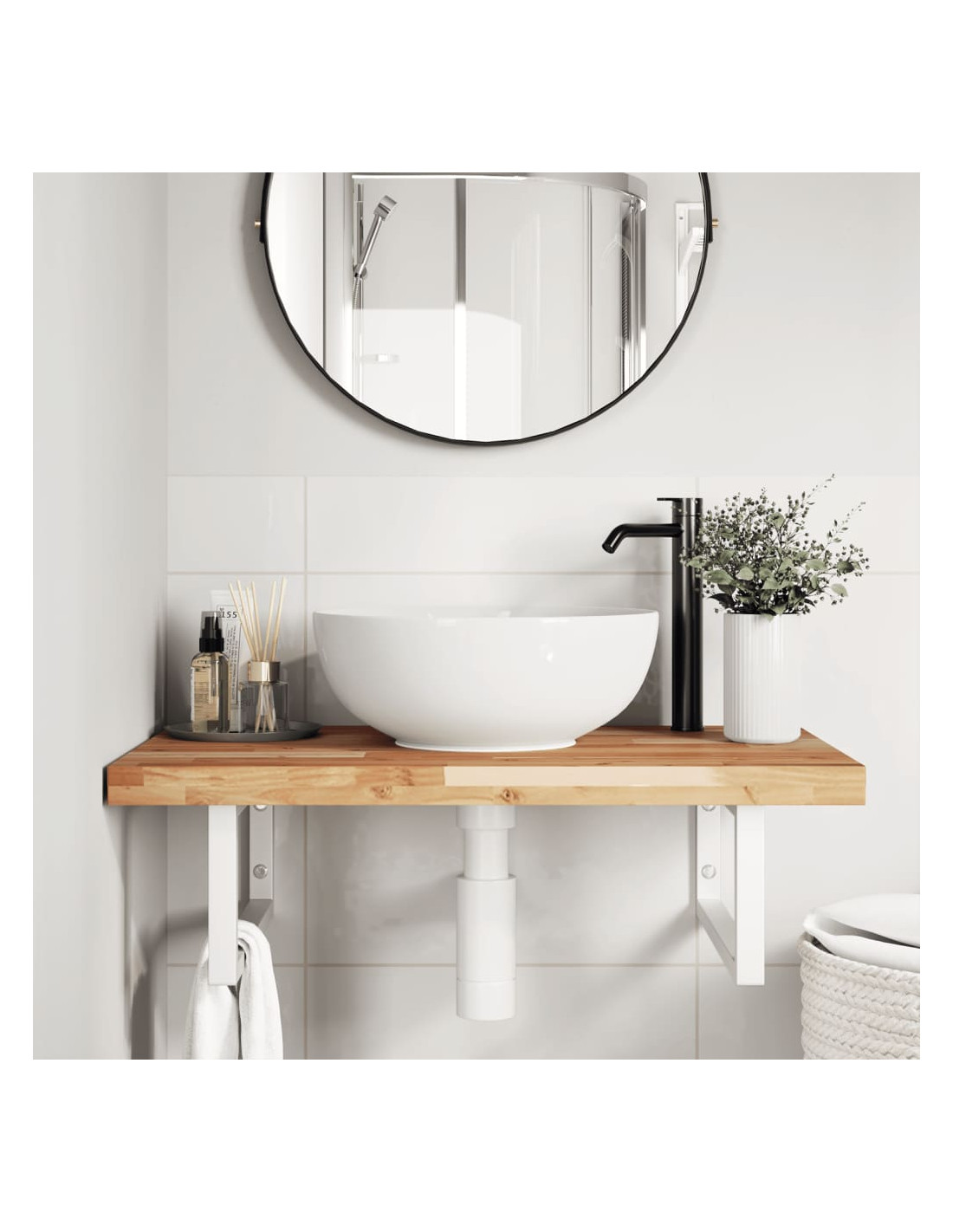 Il ripiano per lavabo a parete si fissa saldamente alla parete, offrendo una soluzione elegante e salvaspazio per il vostro bagno. Robusto e duraturo: Questo ripiano per lavabo è abbinato con una struttura in acciaio e un piano in legno massello di acacia, che lo rendono robusto, stabile e duraturo.Salvaspazio: il ripiano lavabo sospeso ha ampio spazio per riporre creme e piccoli oggetti. Grazie alla forma rettangolare, potete appendere asciugamani o altro sul supporto per risparmiare spazio.Facile da usare: il piano di lavoro non è forato per consentire il montaggio del lavabo a sinistra, a destra o al centro, a seconda delle esigenze della stanza. Grazie ai fori predisposti nel supporto, può essere facilmente assemblato con il piano e montato a parete.Ampie applicazioni: grazie al suo design moderno, offre spazio aggiuntivo per vari tipi di bagni. Buono a sapersi:Le viti non sono incluse, è possibile acquistarle separatamente in base alle informazioni fornite di seguito.Fissaggio a parete: 2 viti di espansione M8 per staffaPiano in legno: 2 viti M5x18 (T=2) o 2 viti M5x20 (T=2,5/4cm) per staffa
