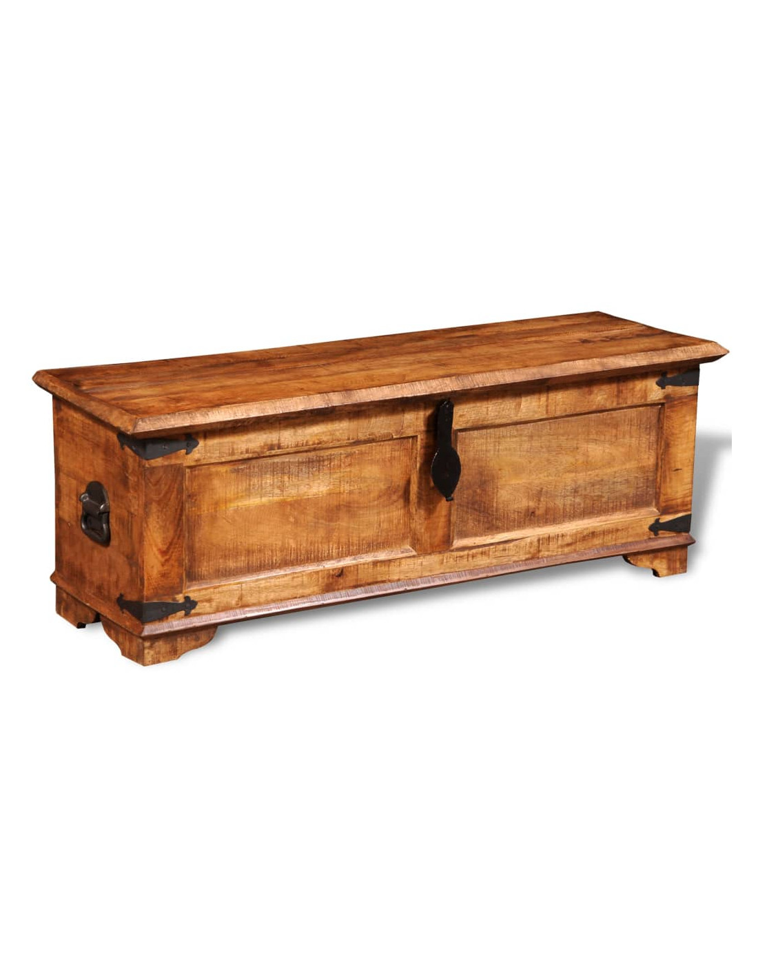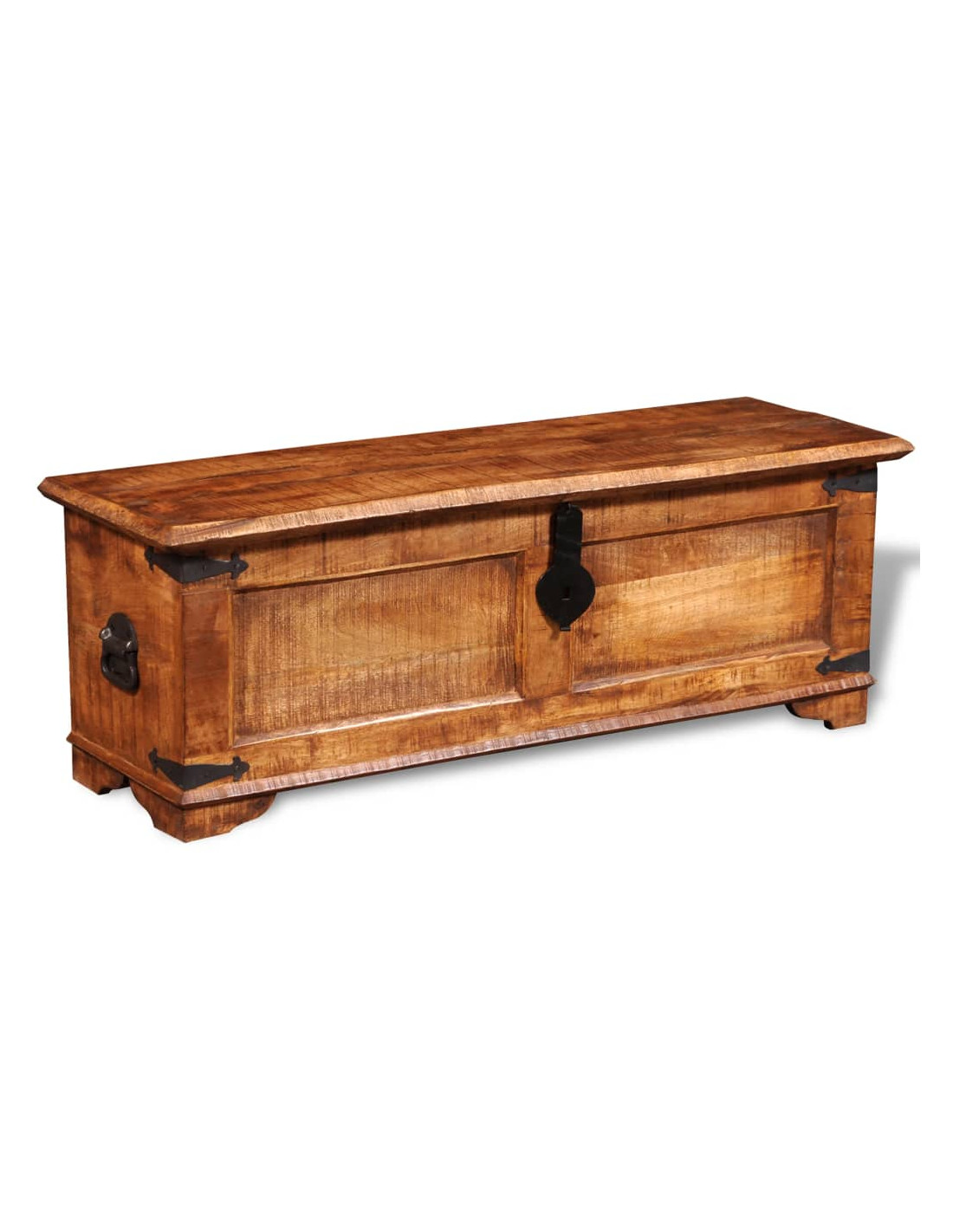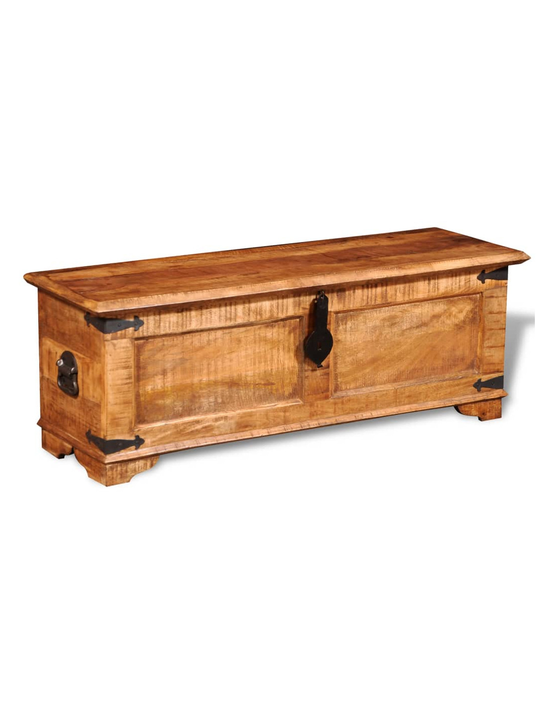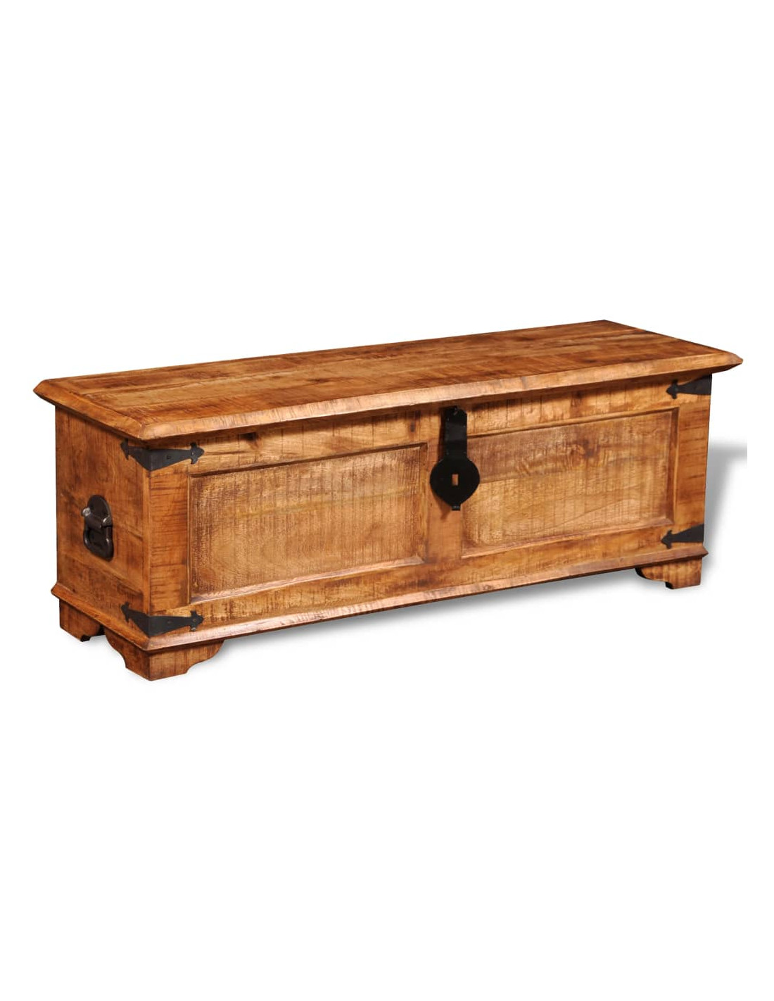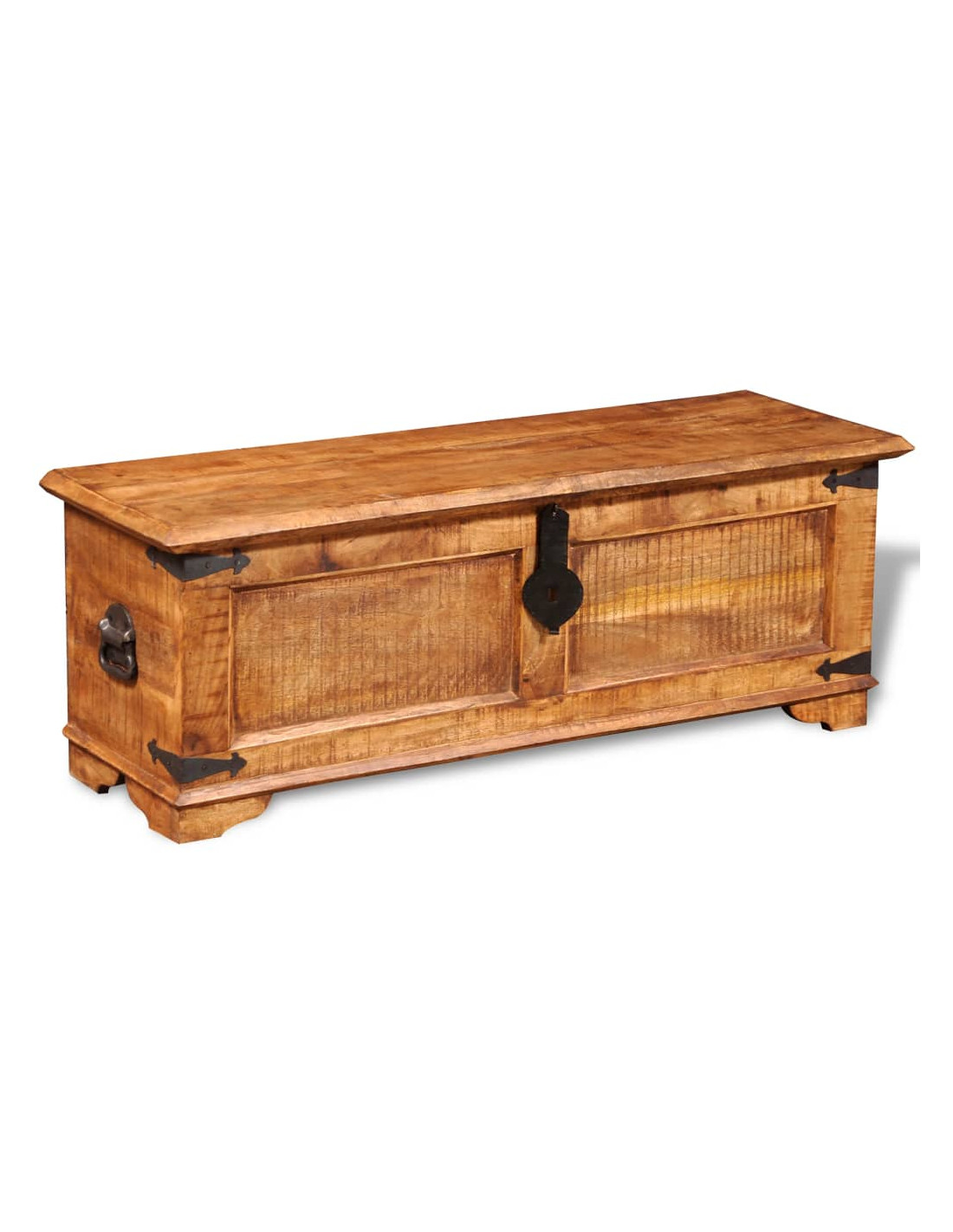 Questa cassapanca è interamente realizzata a mano in legno massello, il che significa che ogni pezzo è unico e leggermente diverso da quello successivo. Il legno grezzo di mango è solido, stabile, durevole e bello.