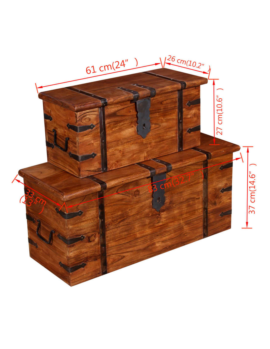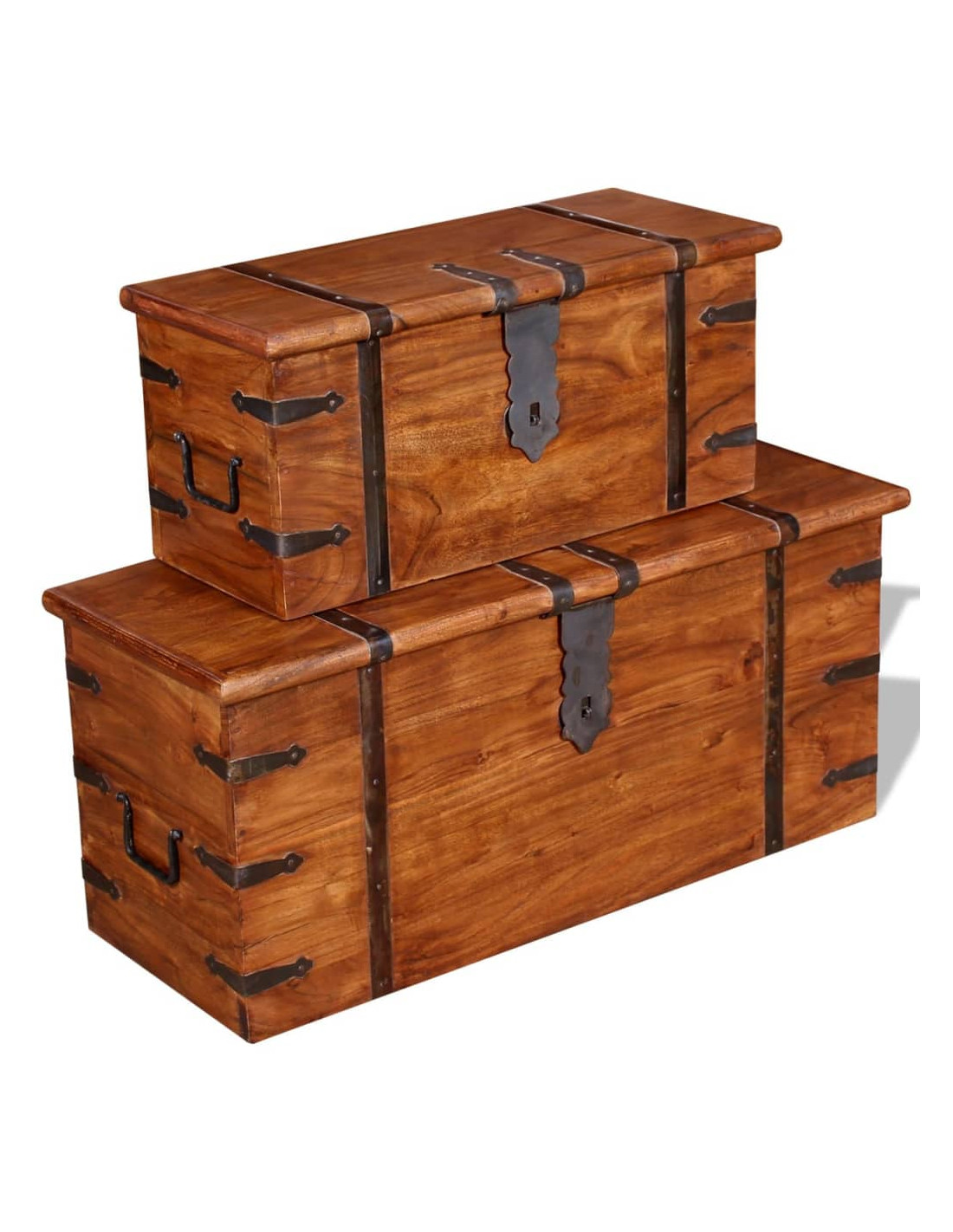 Questo esclusivo set di bauli in legno, realizzato in legno massello con finitura ambra, sarà un'ottima aggiunta alla vostra stanza.