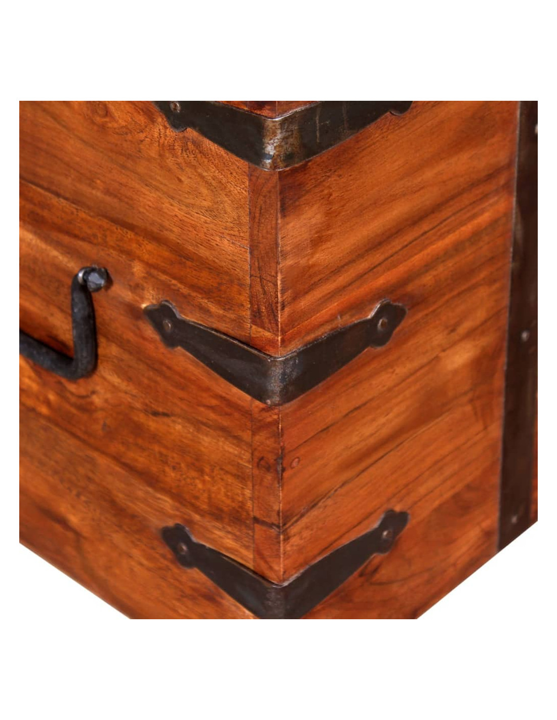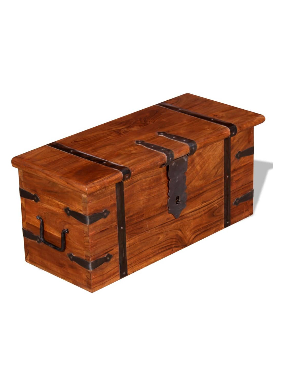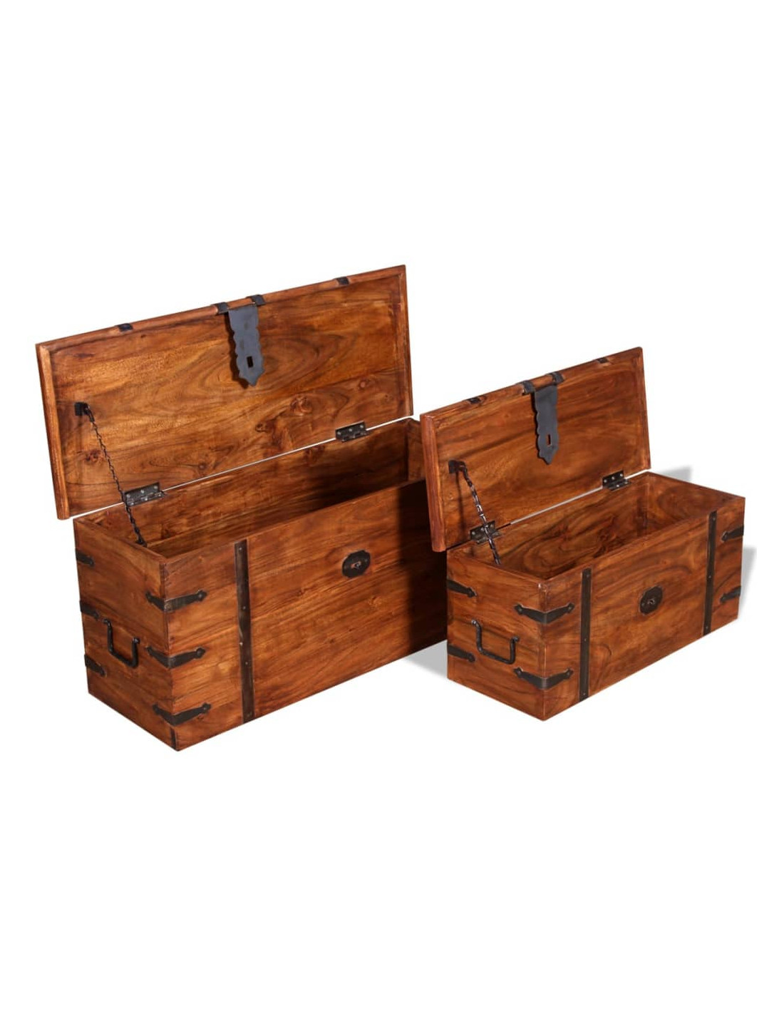 Questi contenitori offrono ampio spazio per riporre vestiti, riviste, libri, attrezzi e altri accessori. Hanno un fermo sul davanti e due maniglie sul lato. Con un piano piatto stabile, queste casse di legno possono essere utilizzate anche come tavolino da salotto, tavolino da divano, tavolino laterale, tavolino, ecc. I bauli sono realizzati a mano in legno massello di acacia e presentano le caratteristiche del palissandro. La raffinata lavorazione artigianale e le belle venature del legno rendono ogni pezzo unico e leggermente diverso da tutti gli altri.