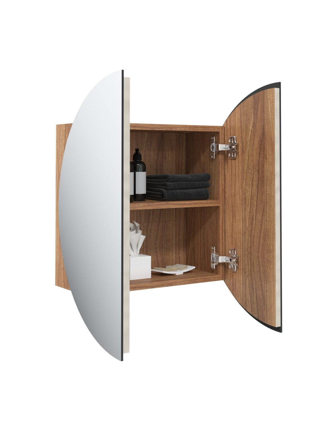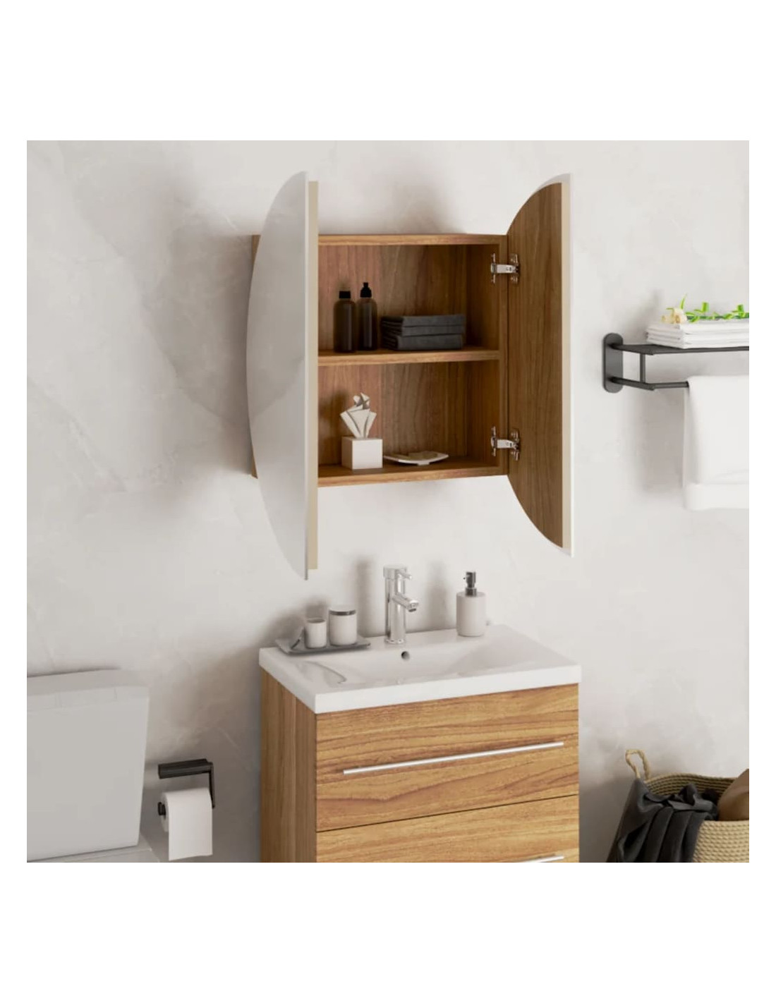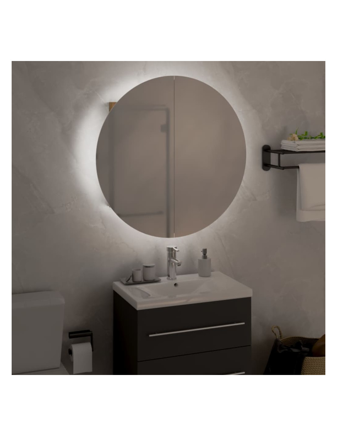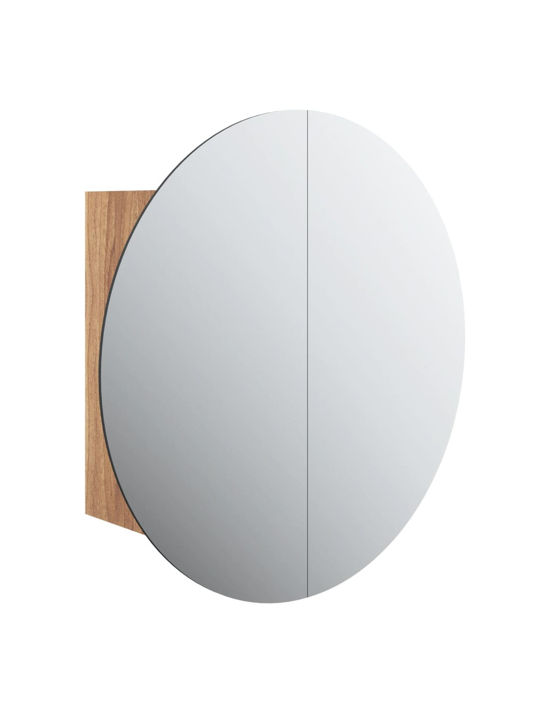 Mantieni i tuoi articoli essenziali per il trucco organizzati e ordinati con questo mobiletto da bagno alla moda con uno specchio rotondo e una stringa di LED!