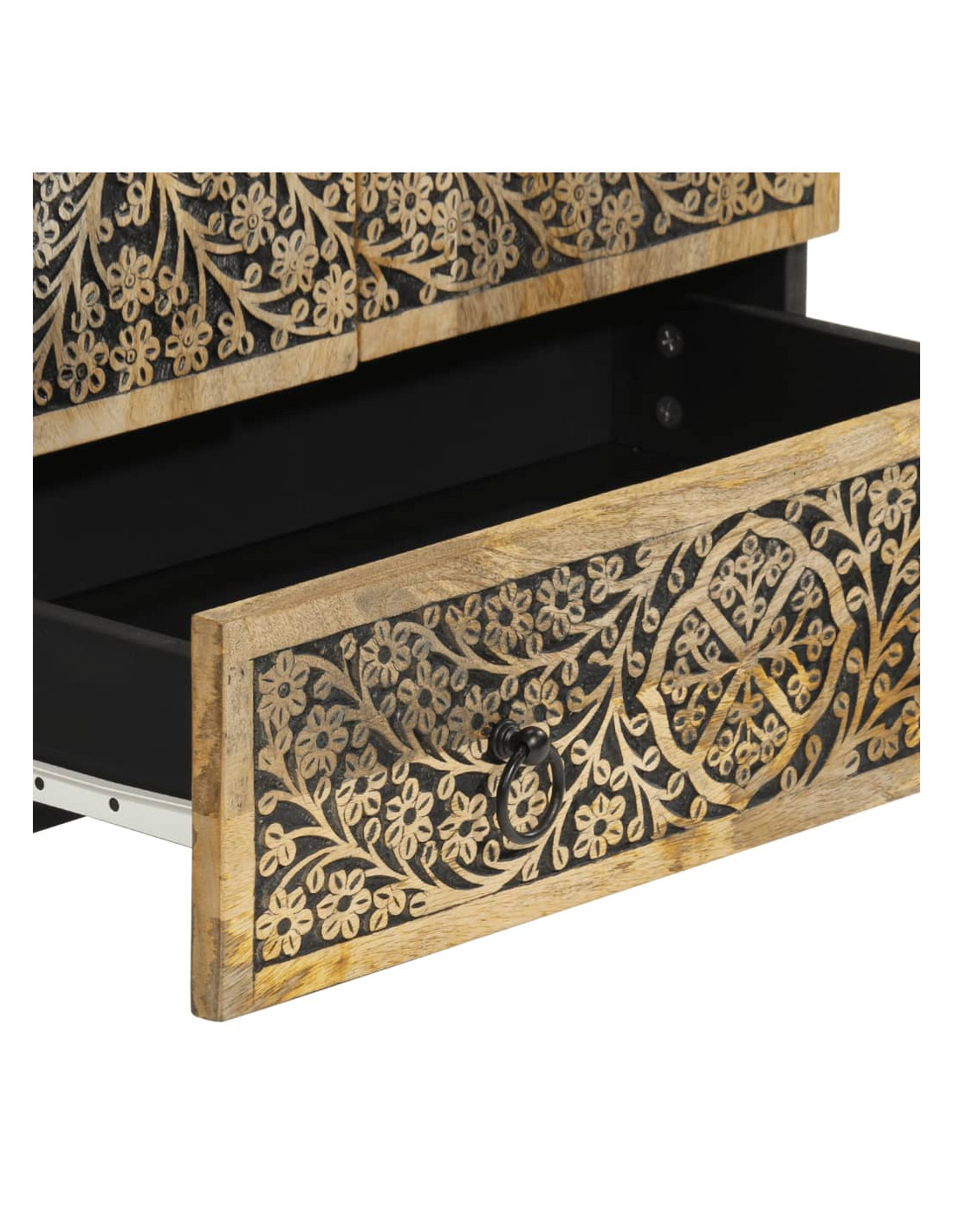 - Materiale: Legno massello di mango con finitura naturale, legno multistrato, ferro