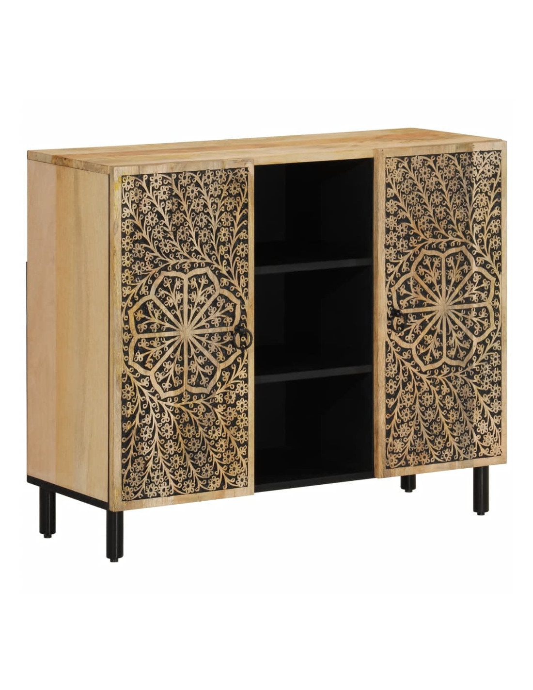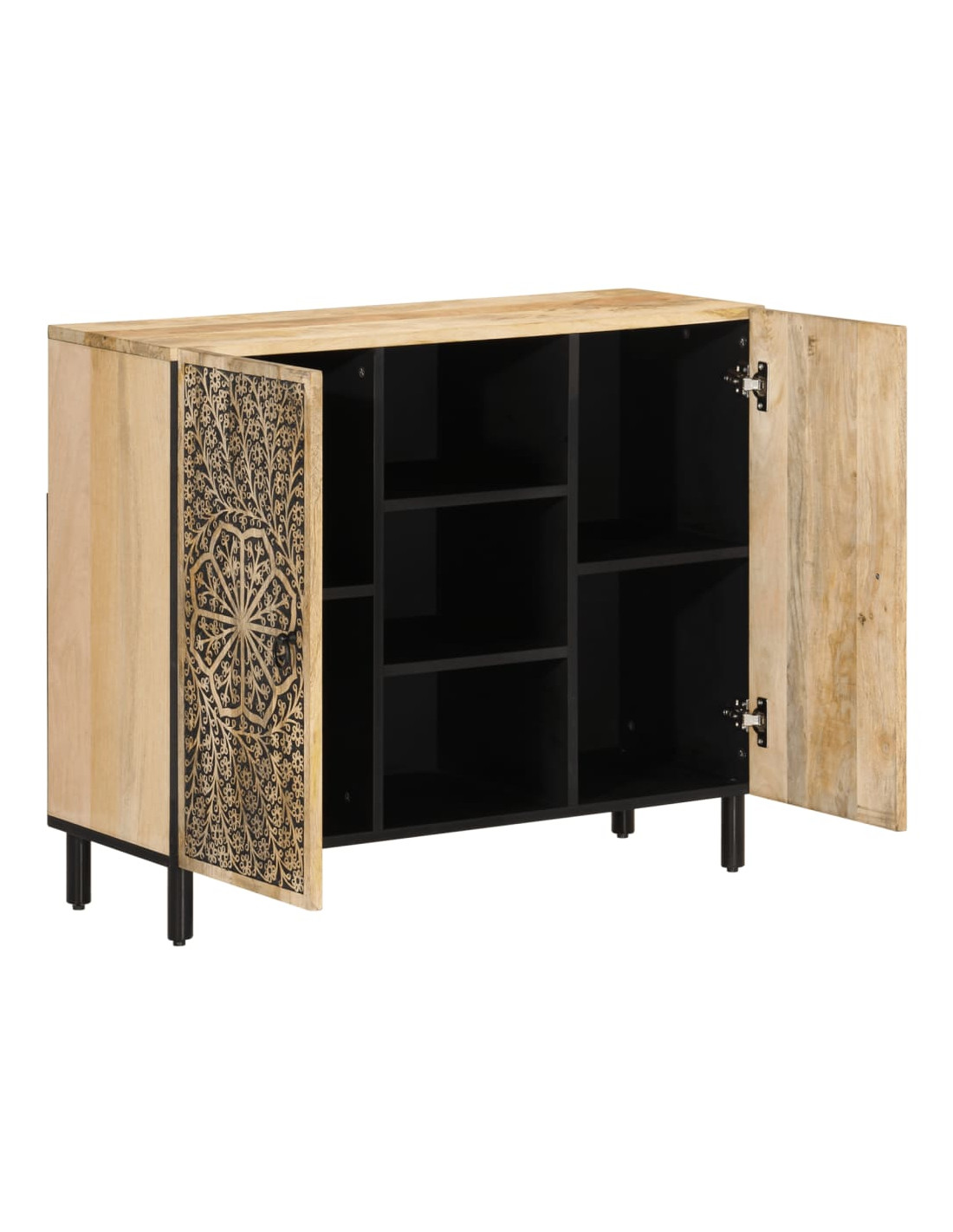- Materiale: Legno massello di mango con finitura naturale, legno multistrato, ferro