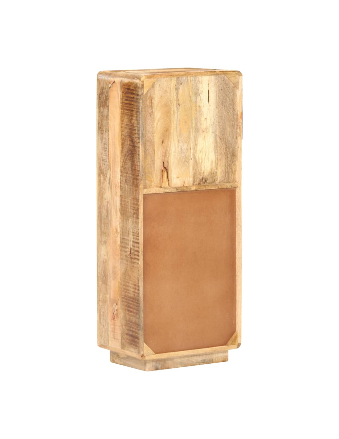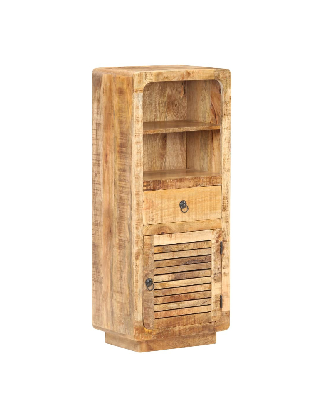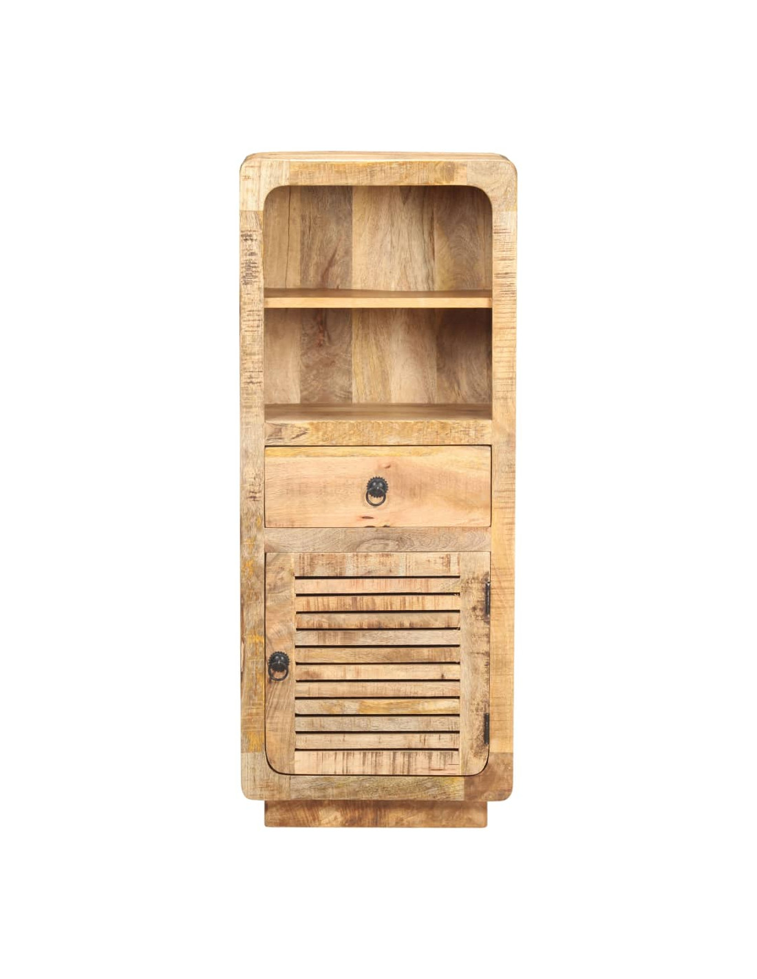 La credenza in legno è realizzata in legno massello di mango grezzo con finitura naturale, un legno duro tropicale con la forza di sopportare il peso. Inoltre resiste all'usura del tempo, rendendolo stabile e durevole. La lavorazione artigianale e le belle venature del legno rendono ogni mobile unico e leggermente diverso dagli altri. Questo mobile laterale presenta anche un'anta, un cassetto e due ripiani che offrono ampio spazio di stoccaggio.