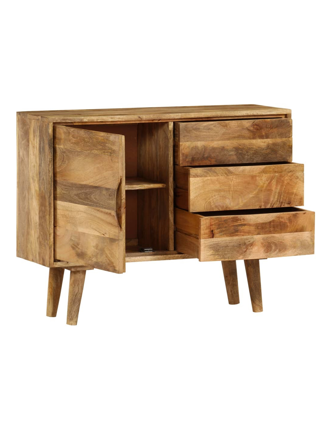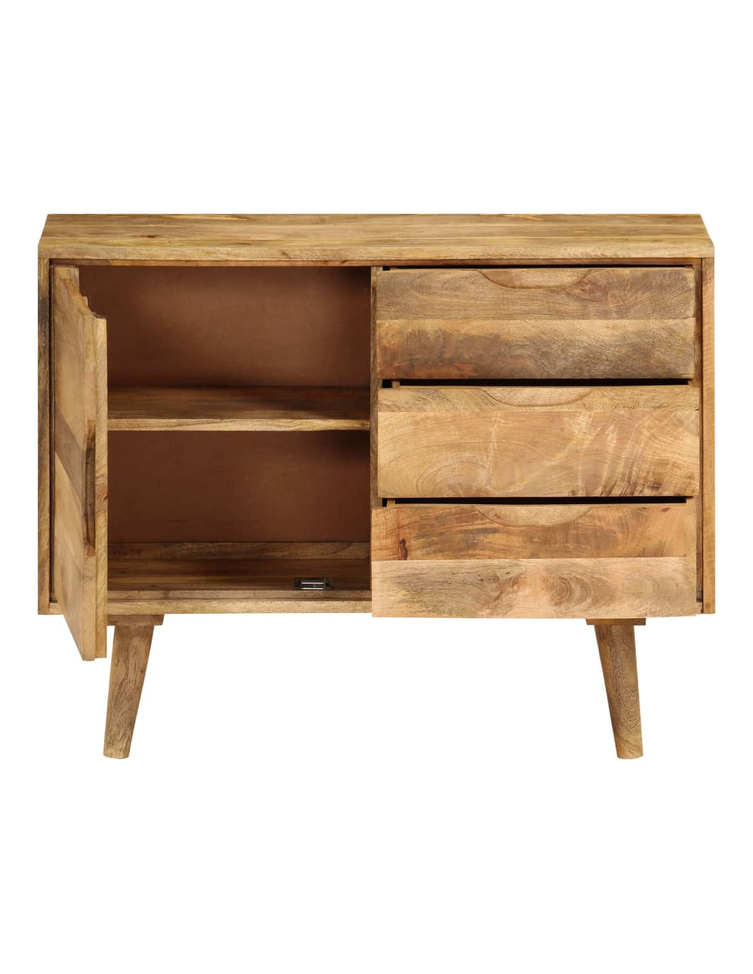 L'armadio è realizzato a mano in legno di mango, solido, stabile, resistente e bello, e l'artigianato si aggiunge al suo spettacolare stile retrò. Ogni fase del processo viene effettuata con la massima cura, che si tratti di levigatura, lucidatura, pittura o laccatura. La lavorazione artigianale e le bellissime venature del legno rendono ogni pezzo unico e leggermente diverso dall'altro.