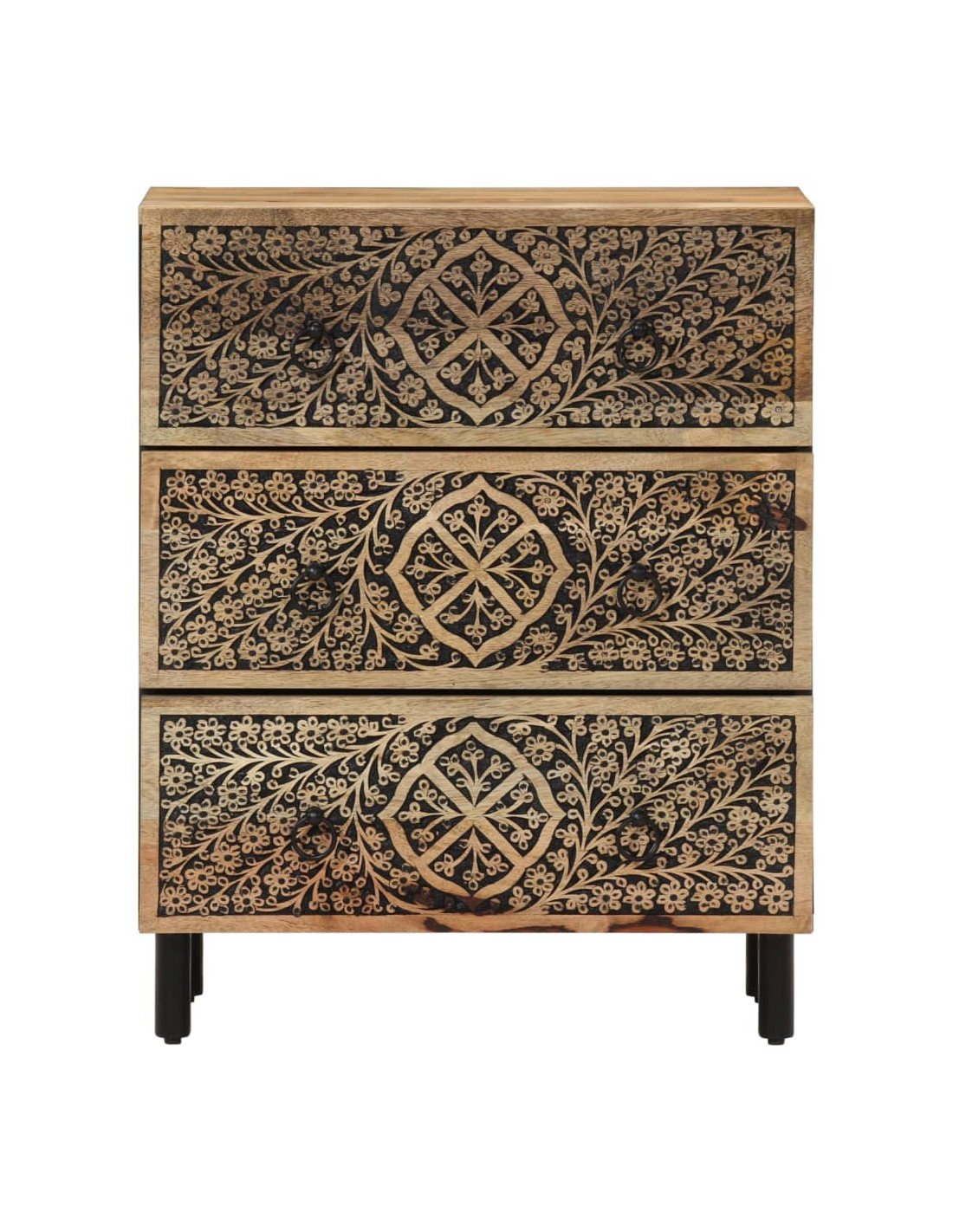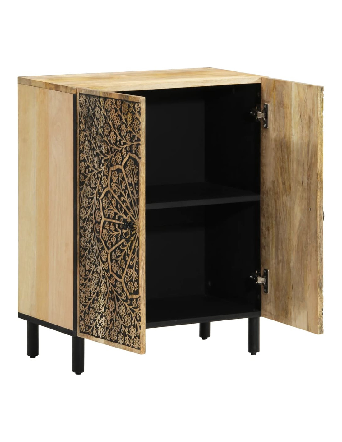 - Materiale: Legno massello di mango con finitura naturale, legno multistrato, ferro