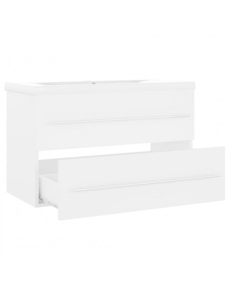 Il mobile è realizzato in truciolato, che lo rende robusto e stabile. L'armadio ha 1 cassetto che offre ampio spazio per riporre gli oggetti. Si adatta perfettamente sotto il lavandino e rende abbastanza comodo lo stoccaggio nel bagno. Realizzato in ceramica, il lavabo può servire non solo come recipiente per l'uso quotidiano, ma anche come ornamento nel vostro spazio abitativo. Grazie al suo design di tendenza e contemporaneo, questo lavabo si adatterà sicuramente a qualsiasi arredamento. È inoltre dotato di un troppopieno per far defluire l'acqua quando diventa troppo pieno. La sua superficie vetrata offre un design moderno ma elegante. Inoltre, il mobile e il lavabo sono facili da pulire con un panno umido.