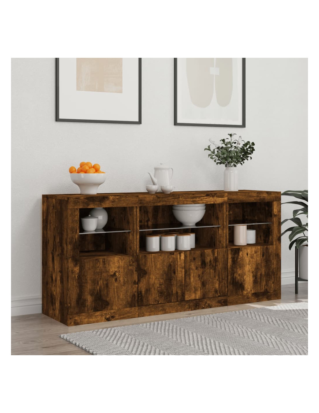 Decorate il vostro ambiente con questa credenza moderna con le luci LED, che si abbina facilmente a qualsiasi stile di arredamento.