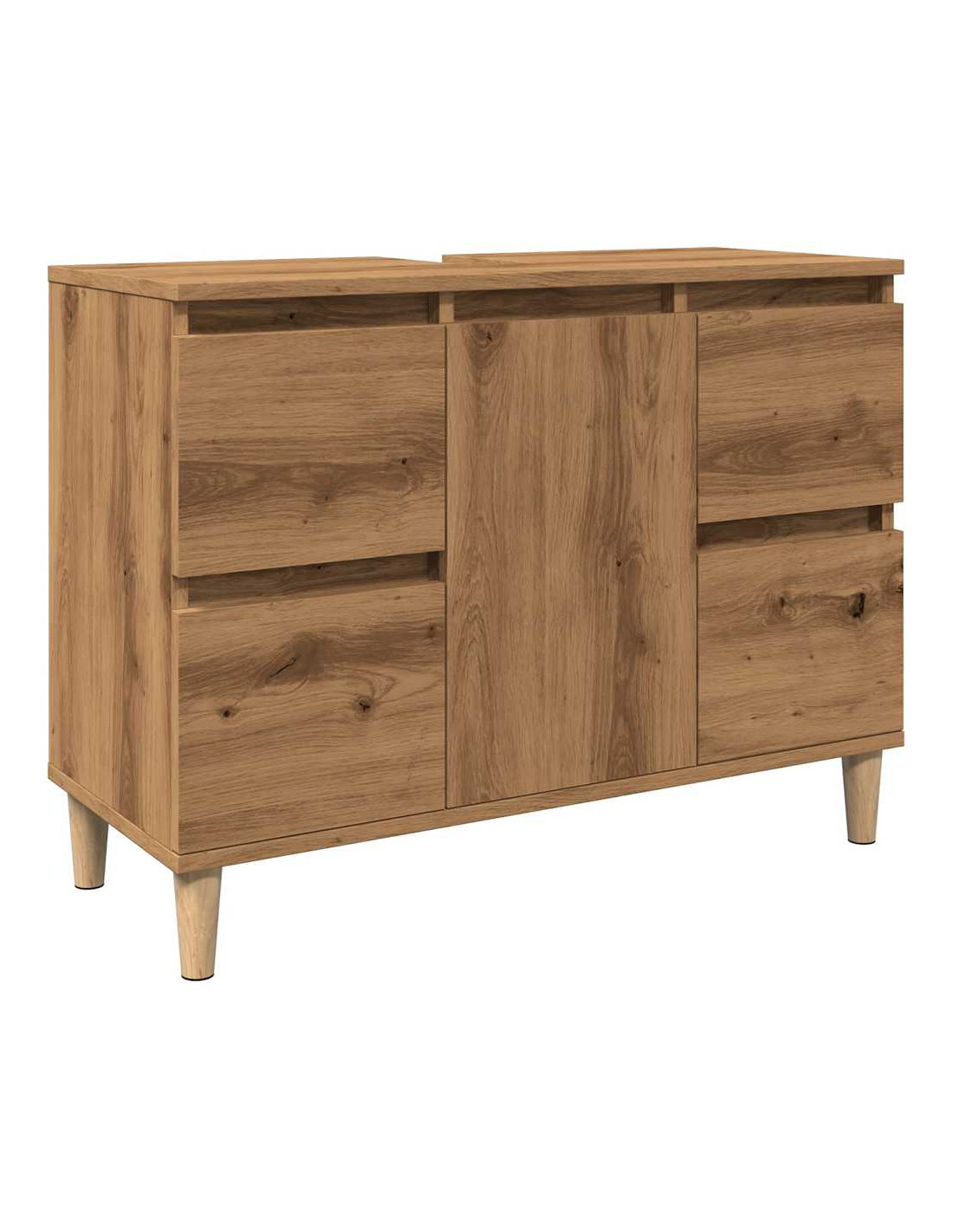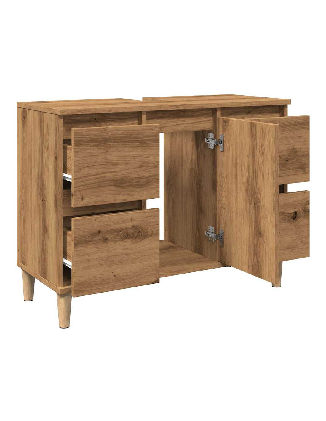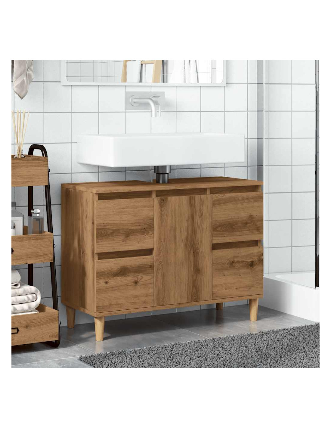- Struttura robusta: I piedini in legno massello di eucalipto conferiscono al mobile sottolavabo un aspetto naturale e piacevole, garantendone al contempo la stabilità.