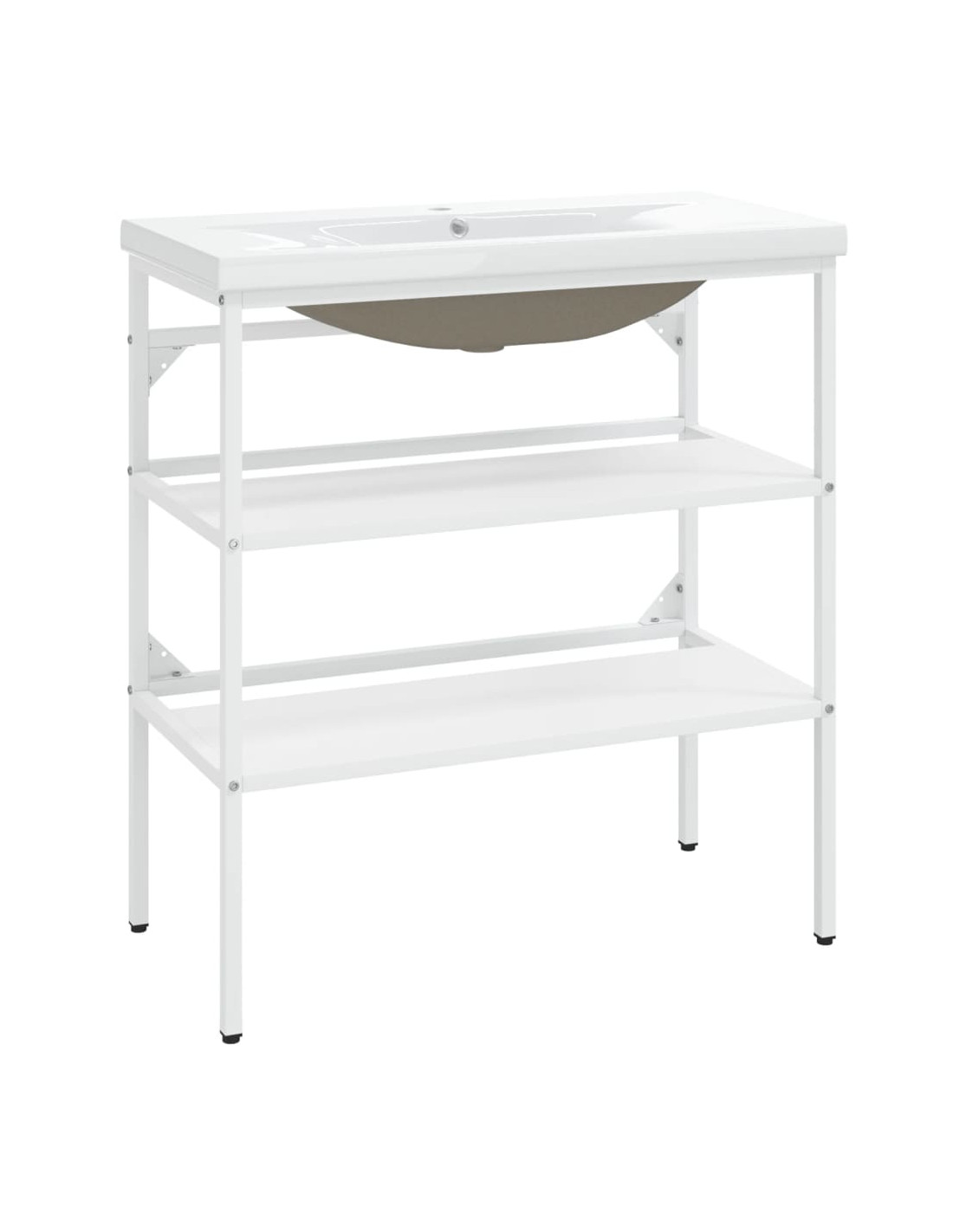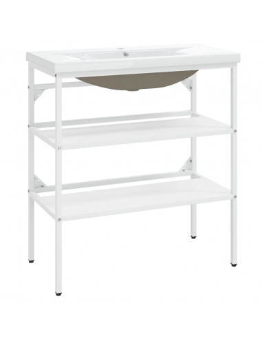 Il lavabo è realizzato in ferro verniciato a polvere, che lo rende stabile e durevole. Questa struttura per lavabo offre un facile accesso ad asciugamani e cestini e crea uno spazio più ampio rispetto allo spazio di stoccaggio chiuso. Realizzato in ceramica, il lavabo può fungere non solo da vaso per l'uso quotidiano, ma anche da ornamento nel vostro spazio abitativo. Grazie al suo design moderno e all'avanguardia, questo lavabo si adatterà sicuramente a qualsiasi arredamento. Un troppopieno è anche incluso per far defluire l'acqua quando il lavandino è troppo pieno. La sua superficie vetrata conferisce un design moderno ed elegante. Inoltre, il telaio del lavabo e il lavabo sono facili da pulire con un panno umido.
