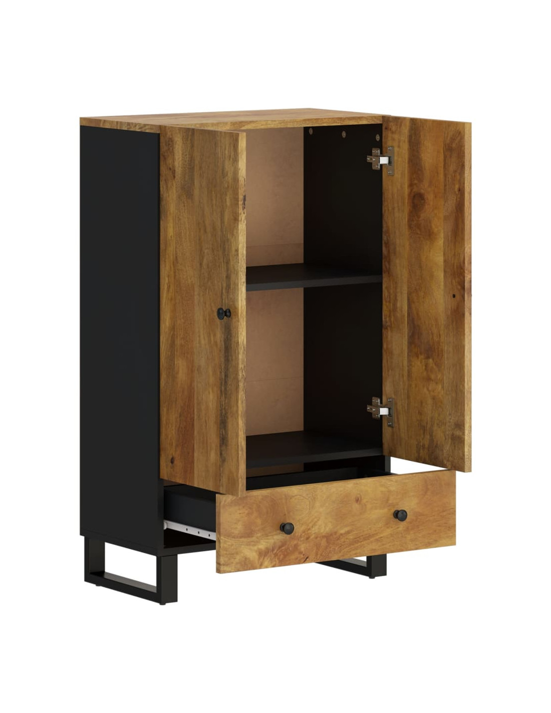 - Legno massello di mango: Questa credenza è realizzata in legno massello di mango, un legno duro con venature dense. Il legno massello di mango non solo è in grado di sopportare grandi pesi, ma è anche resistente all'usura del tempo.